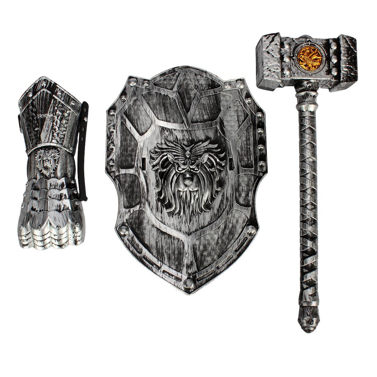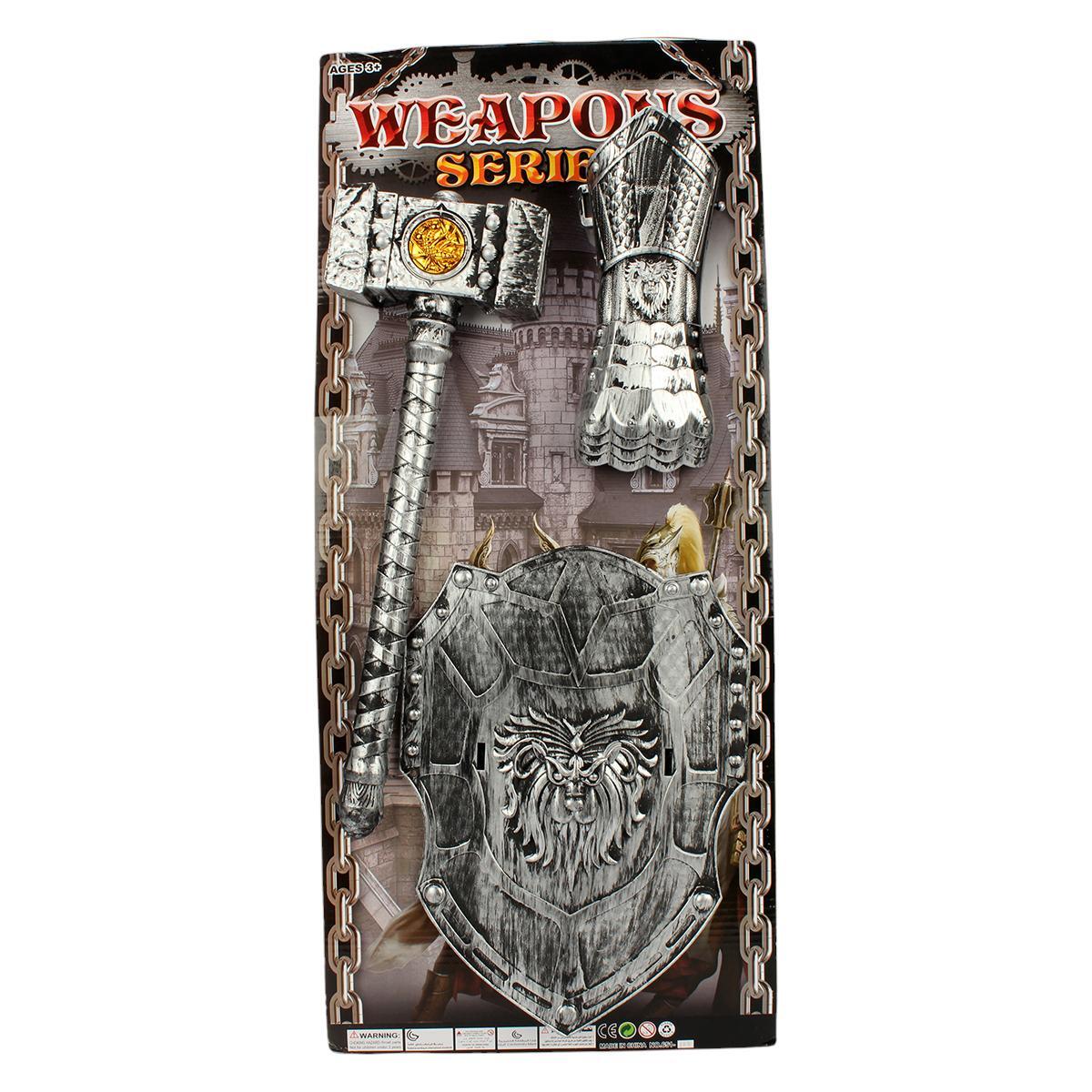 Набор рыцарского оружия для мальчиков: щит 30 см, молот 39 см, перчатка 22 см, пластик, безопасные края