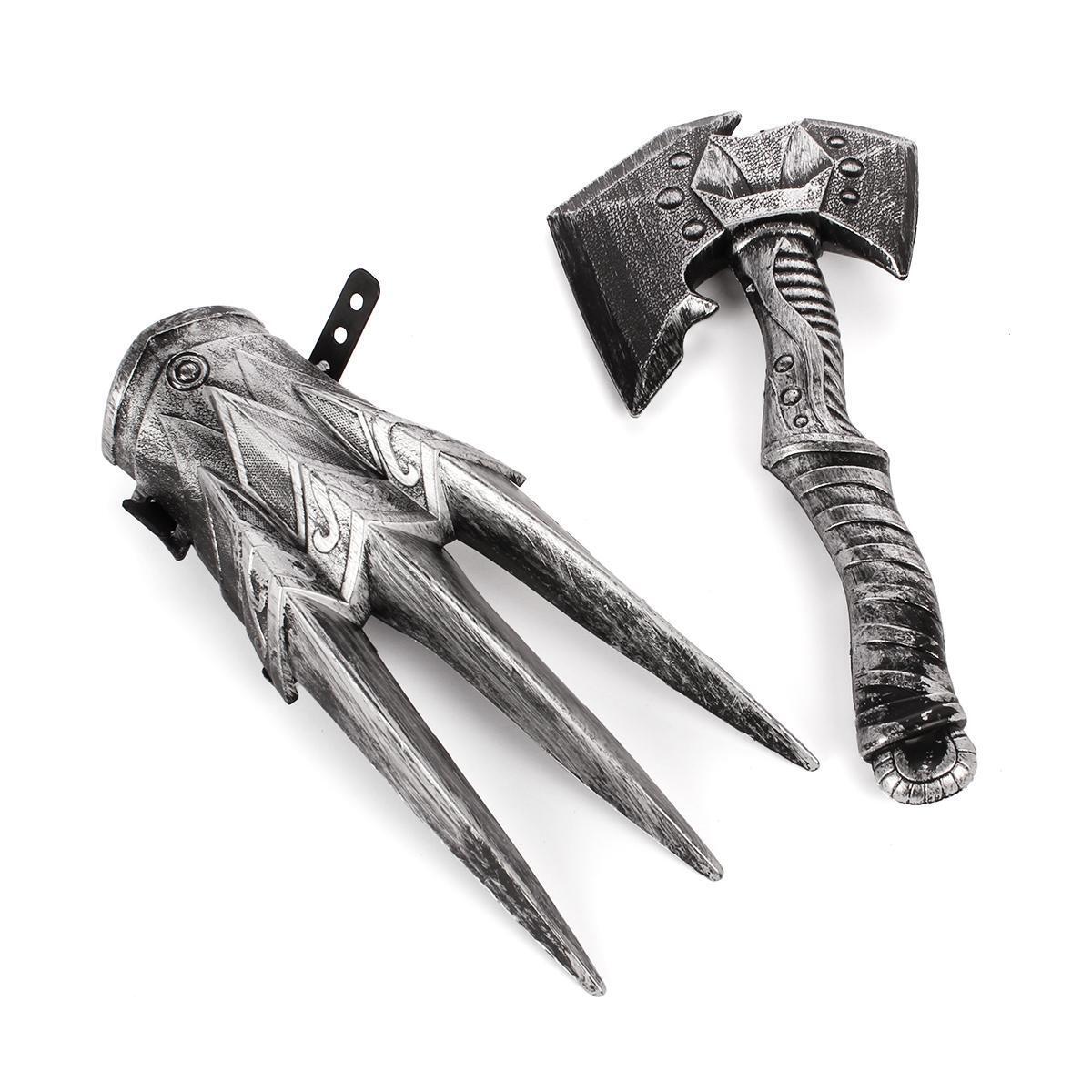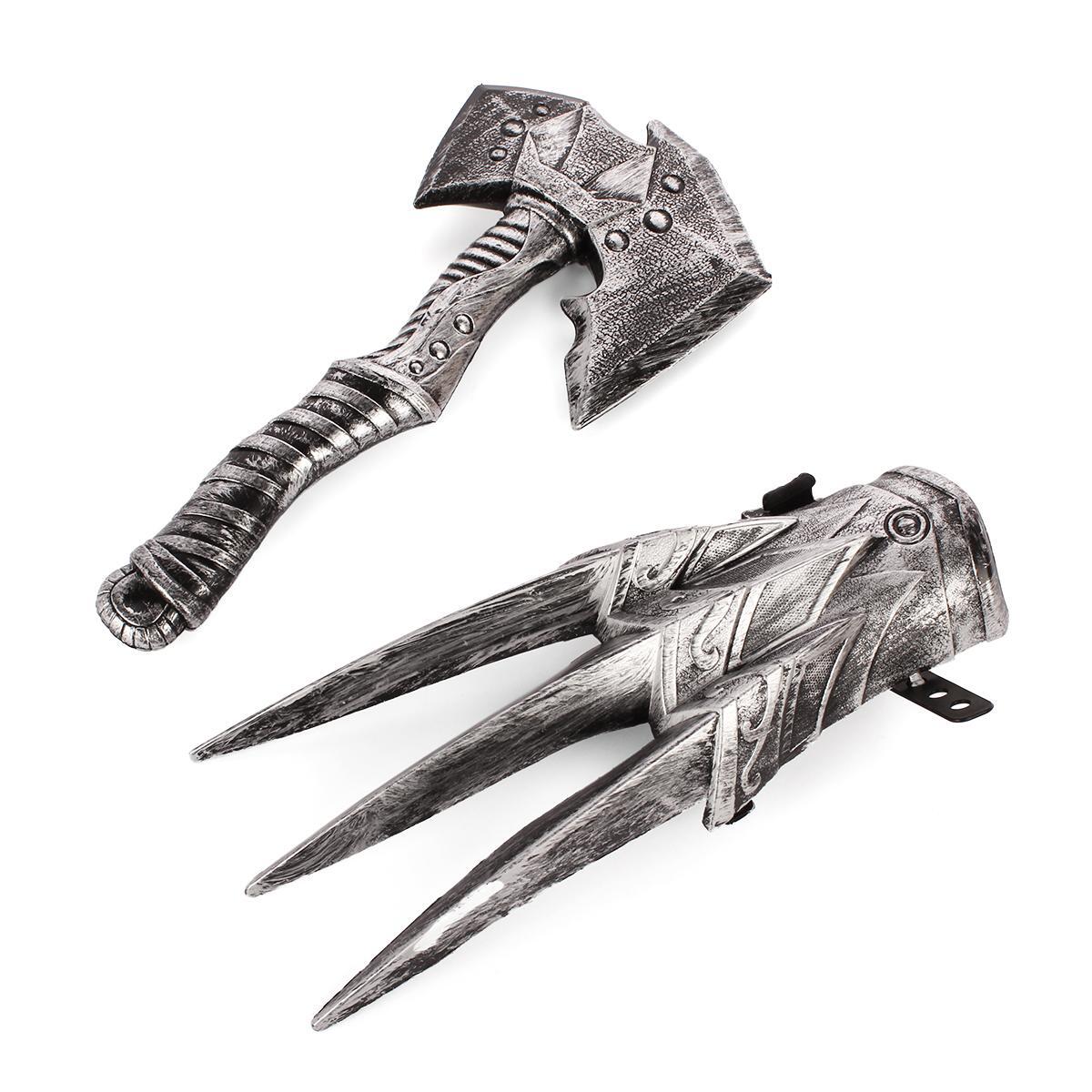 Этот набор игрушечного оружия идеально подойдет для детей, любящих приключения и костюмированные мероприятия. В комплект входит металлический серый топор длиной около 50 см с декоративными узорами и ручкой с рифлением для удобства, а также перчатка с длинными шипами и узорами, усиливающими эффект средневековья. Все элементы выполнены из легкого пластика с металлическим покрытием, создавая реалистичный внешний вид.