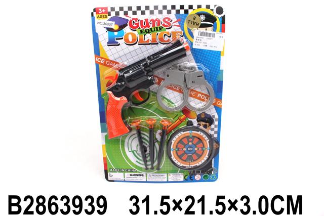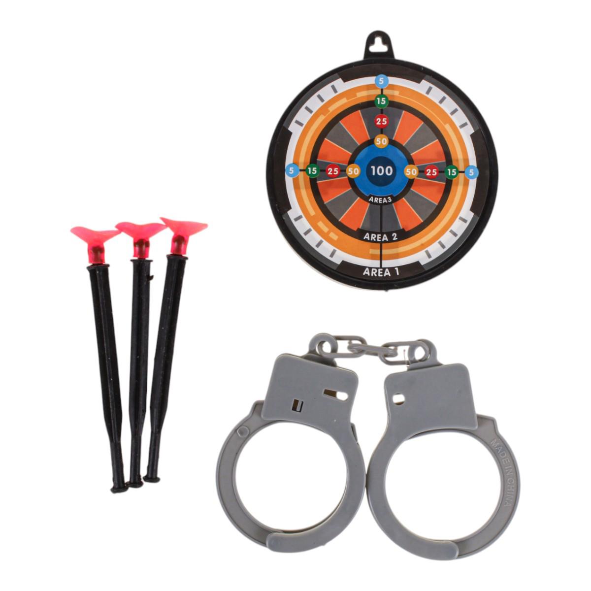 Полицейский набор 'Спецслужбы' станет идеальным подарком для маленького защитника правопорядка. В комплект входят все необходимые аксессуары для увлекательных игр: пистолет со стреляющими присосками, наручники и мишень.