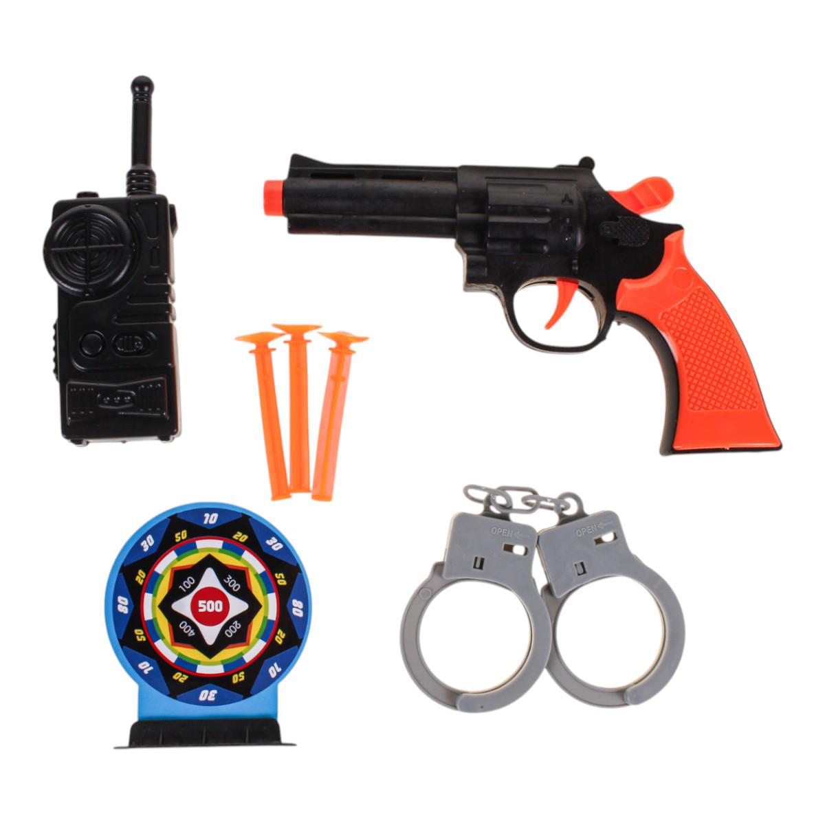 Этот набор оружия спецслужб станет идеальным подарком для маленького защитника, мечтающего о героических подвигах. В комплект входят все необходимые аксессуары для увлекательных игр: рация, наручники, мишень, пистолет со стреляющими присосками.