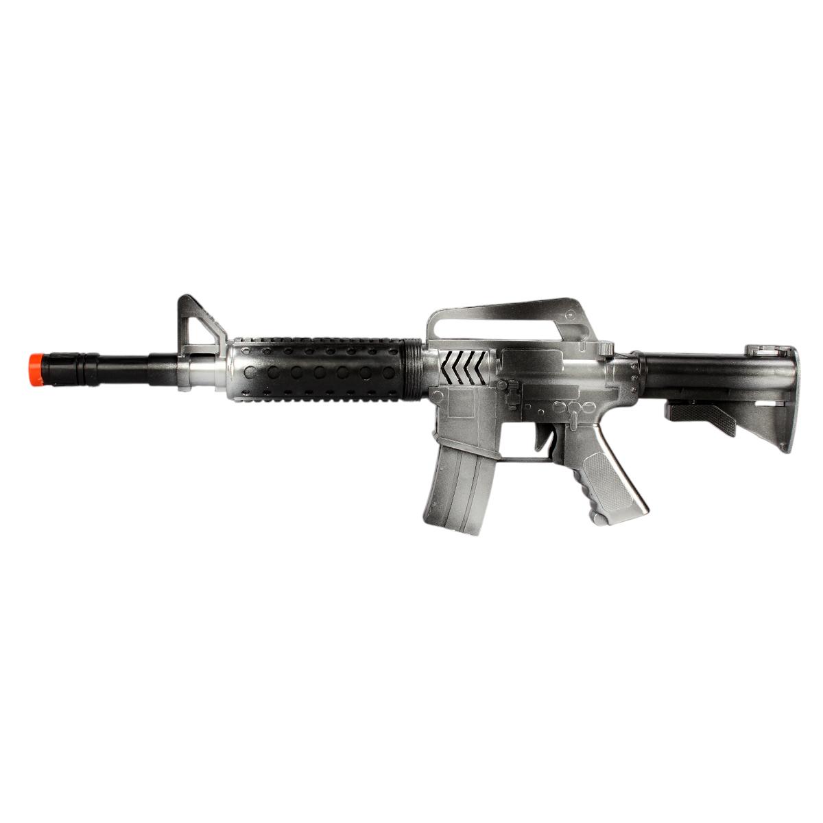 Автомат с оранжевым наконечником и текстурой настоящего оружия создает атмосферу реалистичной игры. Мишени с балльной системой позволяют устраивать соревнования, а прочный пластик выдерживает активное использование. Яркие элементы (красные, зеленые и желтые акценты) привлекают внимание и делают игру визуально интересной.