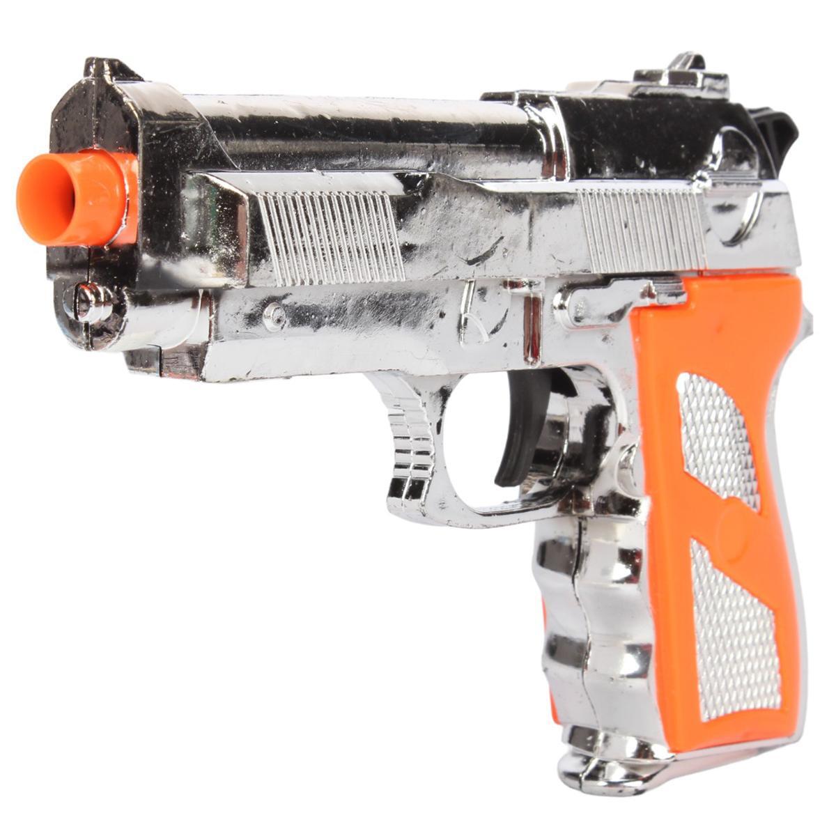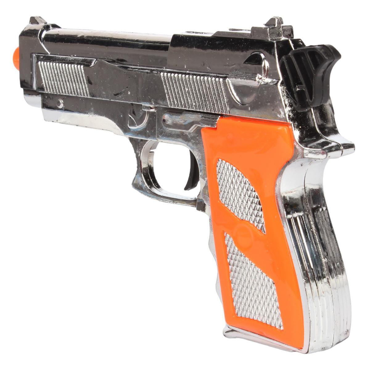 - Пистолет с хромированным покрытием и оранжевой рукояткой