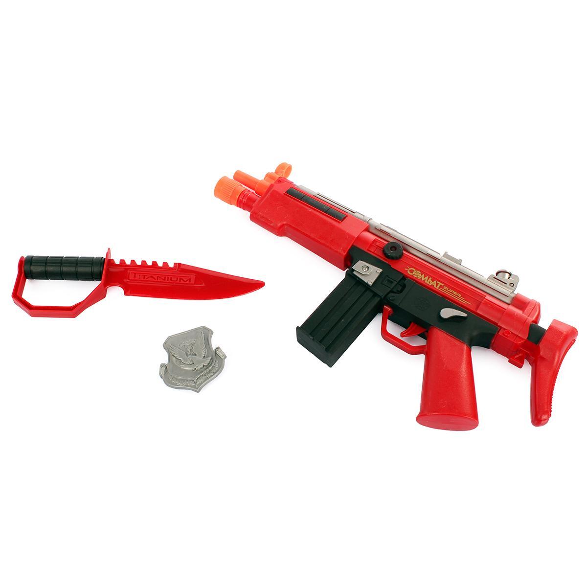 Этот комплект включает игрушечный автомат, нож, значок и аксессуары, выполненные из безопасного пластика. Он отлично подойдет для активных игр, помогает развивать воображение и командный дух у детей. Надежные материалы и яркий дизайн делают его безопасным и привлекательным для малышей.