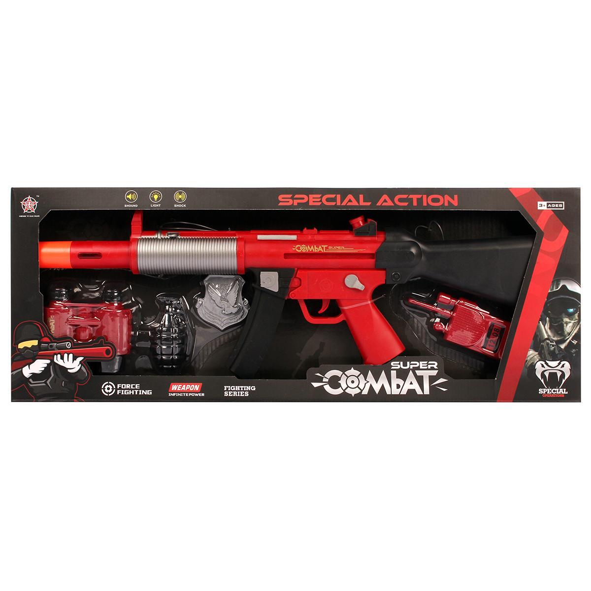 Погрузитесь в мир приключений с набором «Super Combat», где каждая деталь продумана для реалистичной игры. Комплект включает 5 элементов: штурмовая винтовка с безопасной оранжевой насадкой, многофункциональная рация, тактическая граната, наблюдательный бинокль и металлизированный значок.