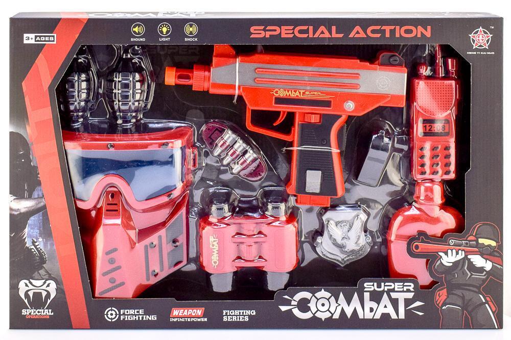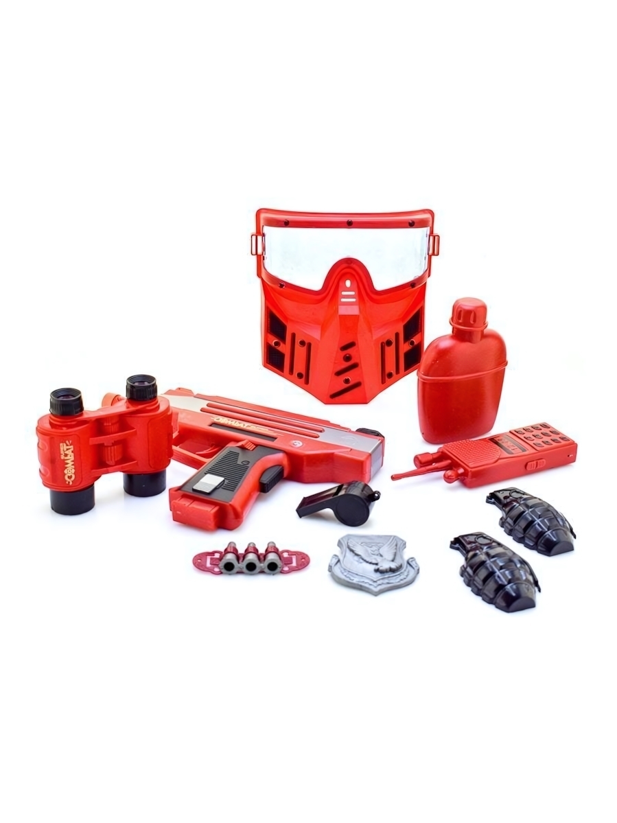 Набор игрушечного оружия для активных игр, 10 предметов: автомат, рация, маска, гранаты, пластик, красный, черный
