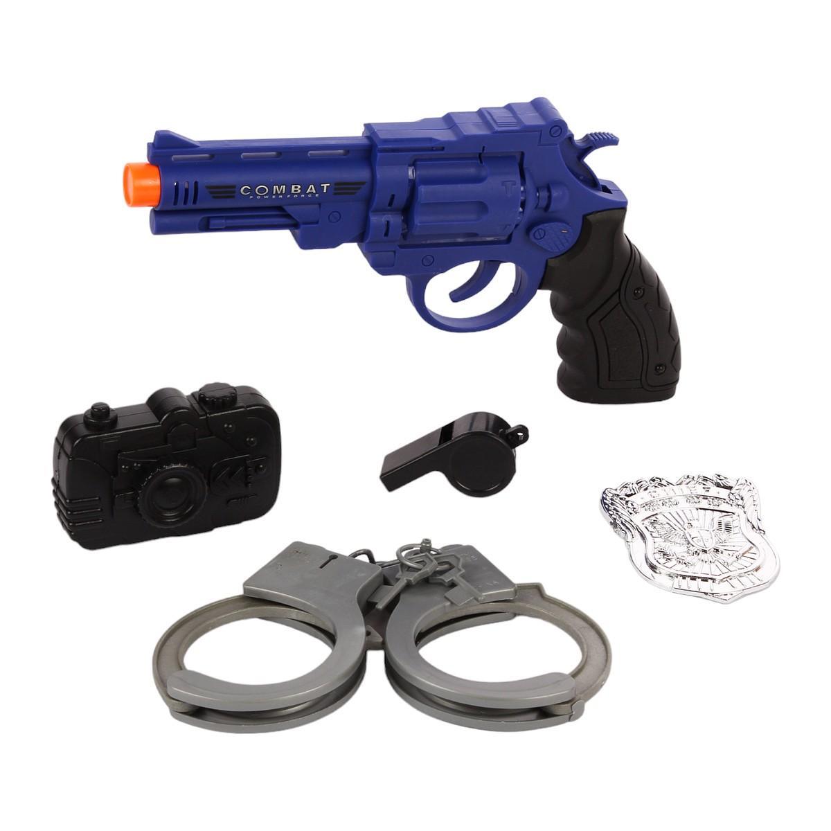 Набор предназначен для детей старше 3 лет и идеально подходит для ролевых игр, где ваш ребенок сможет стать настоящим полицейским или агентом спецслужб. Игрушечный пистолет выполнен в ярком синем цвете с черной рукояткой и оранжевым наконечником, что делает его безопасным для игры. Наручники из металла добавляют реалистичности, а фотокамера и свисток дополняют образ.