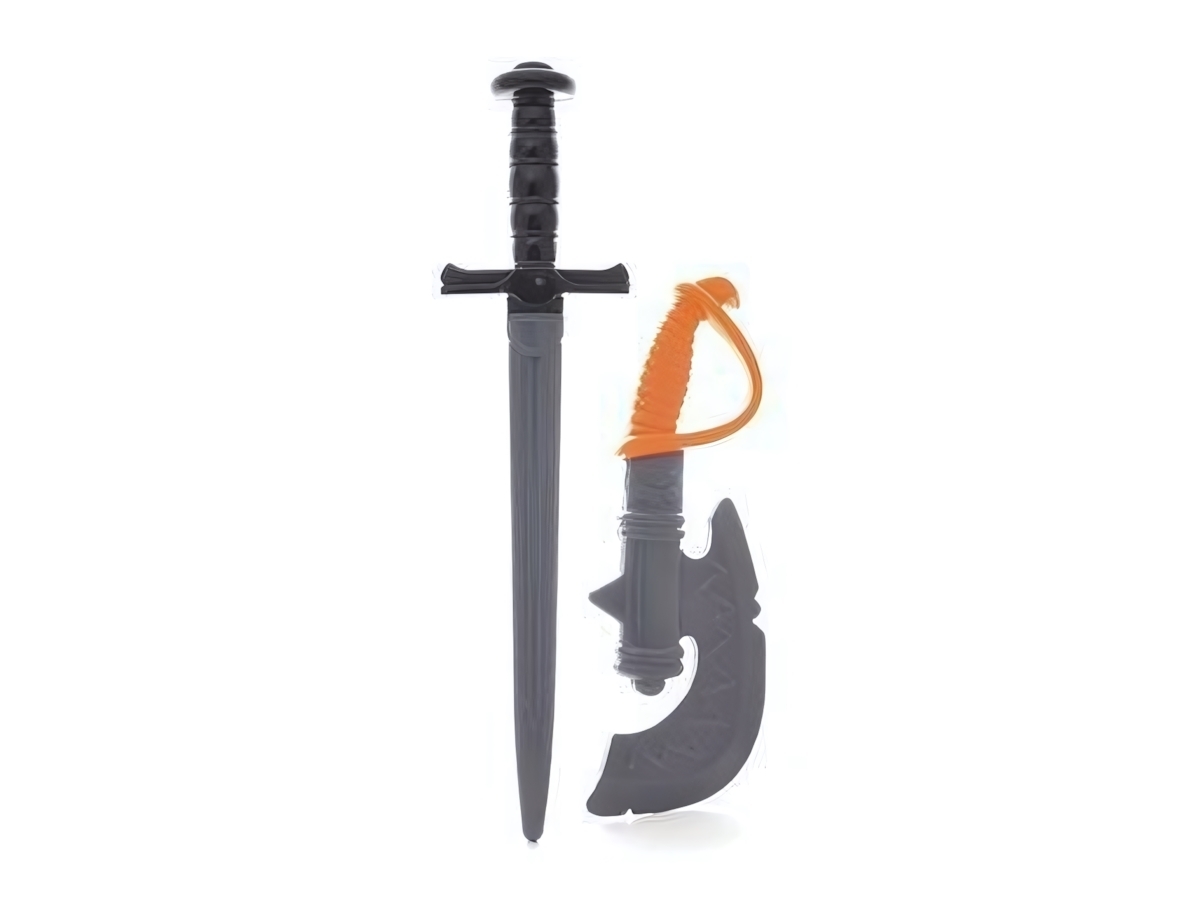 Этот набор включает в себя меч и секиру, выполненные из безопасного пластика, что делает их идеально подходящими для активных игр и фантазий на тему рыцарства, сражений и приключений.
