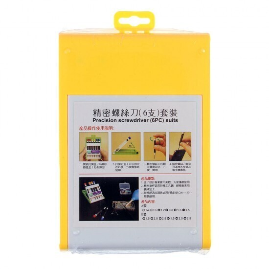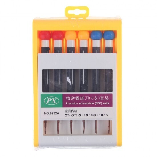 Набор прецизионных отверток «PX» 6 предметов, T4-T6, 0.8-1.5 мм, для ремонта телефонов и мелкой техники, желтый кейс