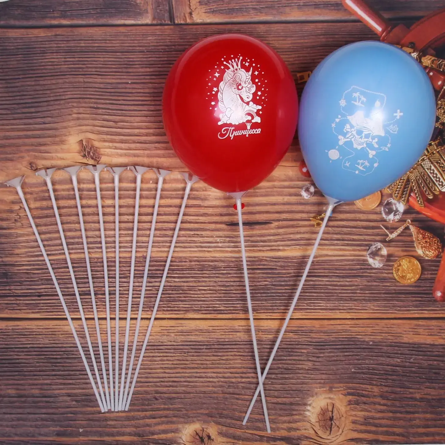 Каждая палочка имеет стандартную длину 42 см, что делает их удобными для использования с различными размерами шариков. Белый цвет палочек гармонично сочетается с любыми цветами шариков, добавляя элегантности вашему декору. Упаковка содержит 10 палочек, что позволяет вам легко организовать праздник для большой компании.