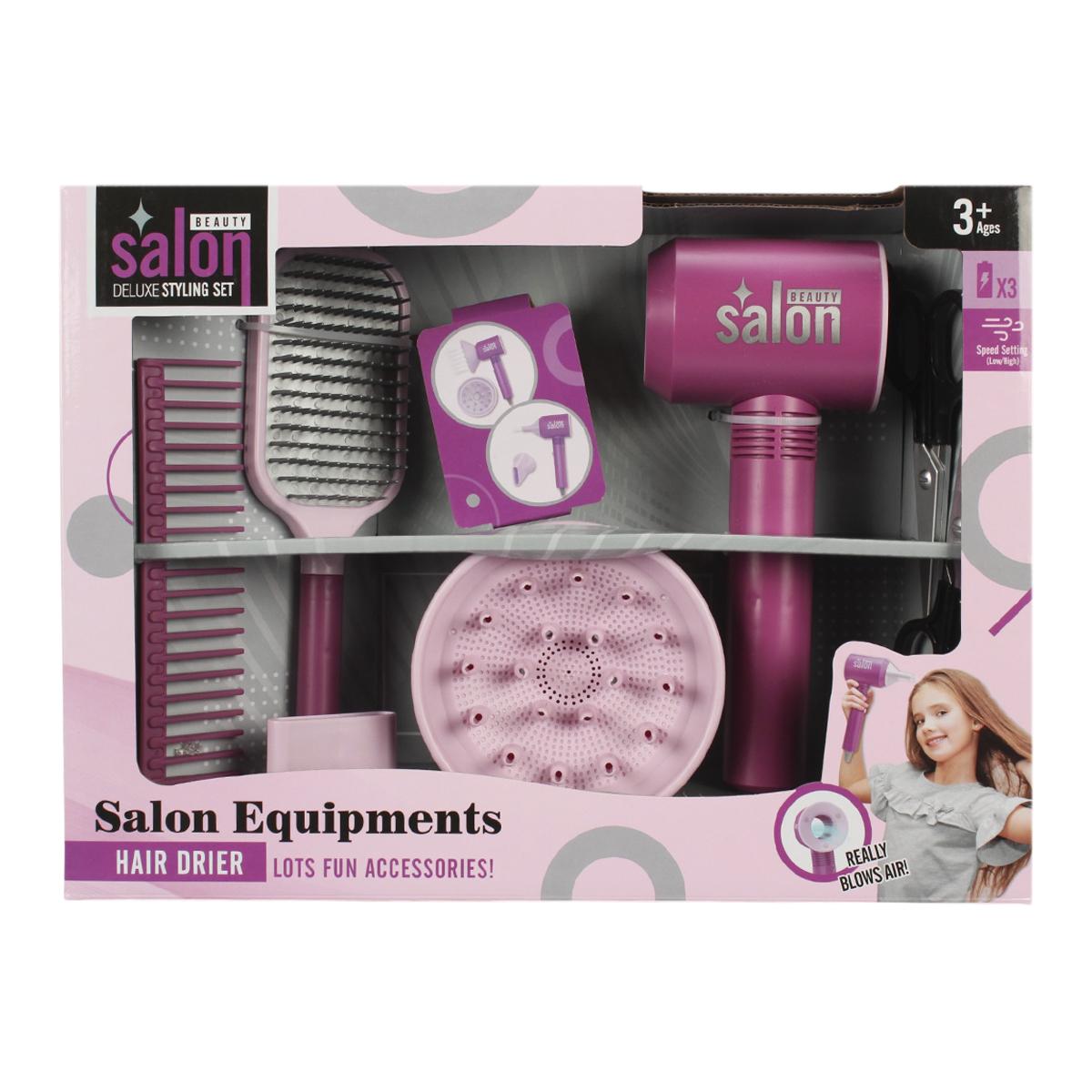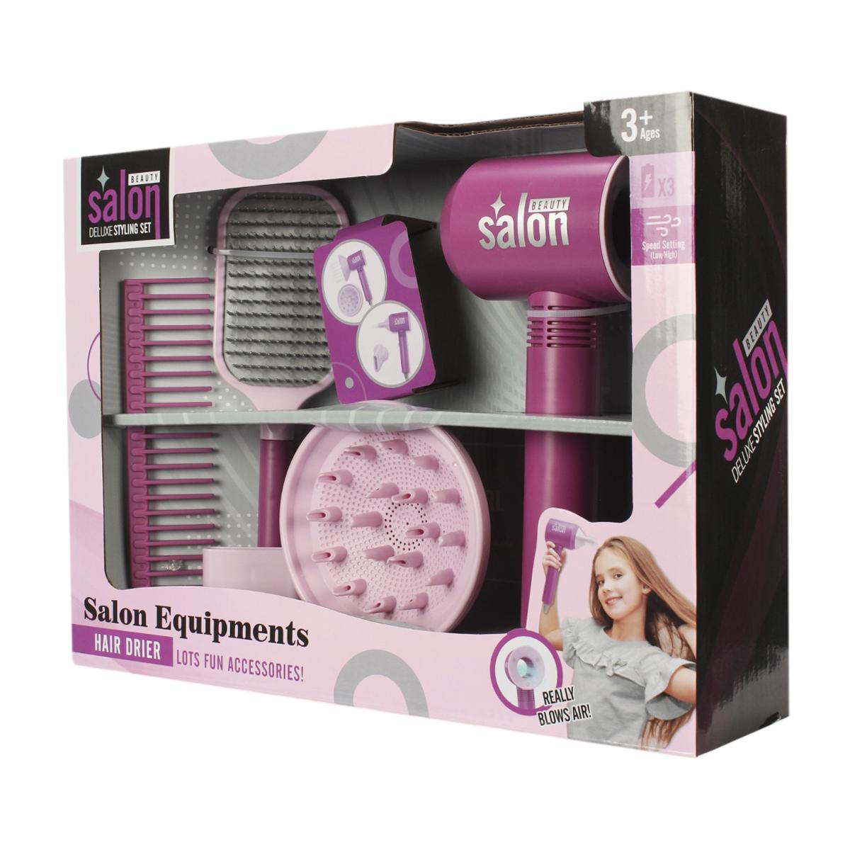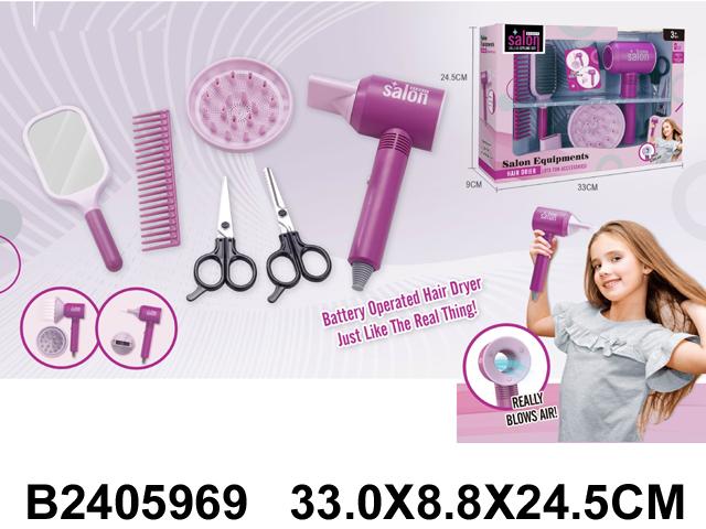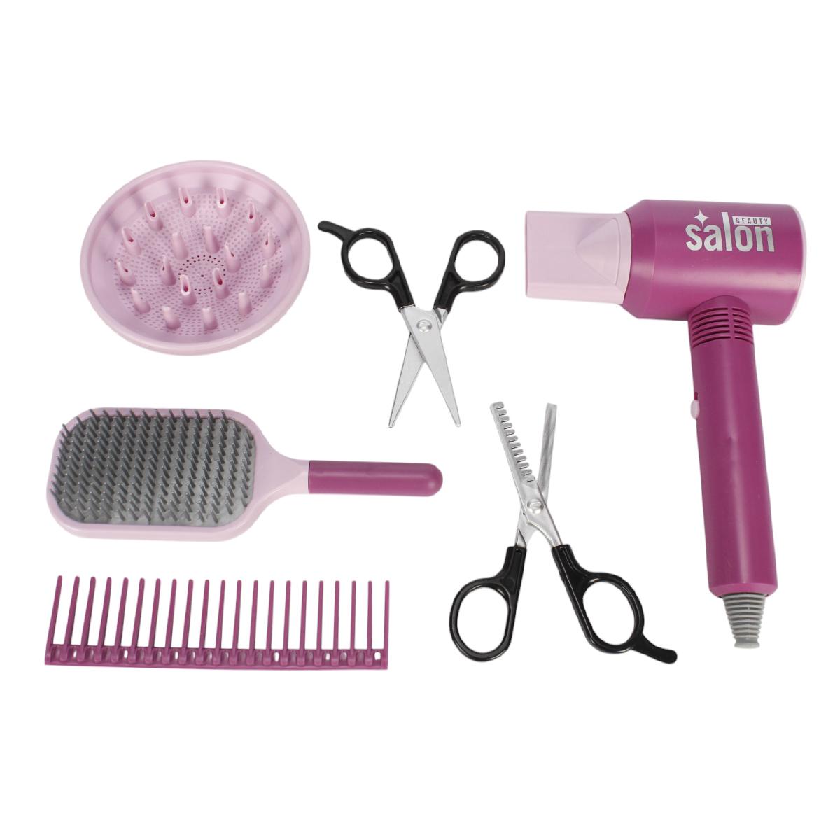 Этот яркий и функциональный набор создан специально для малышей, которые хотят попробовать себя в роли парикмахера. В комплект входит легкий и безопасный фен, разнообразные расчески, ножницы и аксессуары для укладки, позволяющие mimировать профессиональную работу. Благодаря простоте в использовании и привлекательному дизайну, набор идеально подходит для разыгрывания сюжетных игр и развития моторики рук.