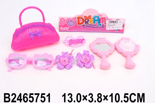 Этот игровой набор для девочек обеспечивает неограниченные возможности для творчества и развития воображения. В комплект входит 6 аксессуаров, среди которых сумочка, зеркала, расческа, очки и бижутерия, которые позволяют маленькой леди учиться экспериментировать с стилем и развивать мелкую моторику.