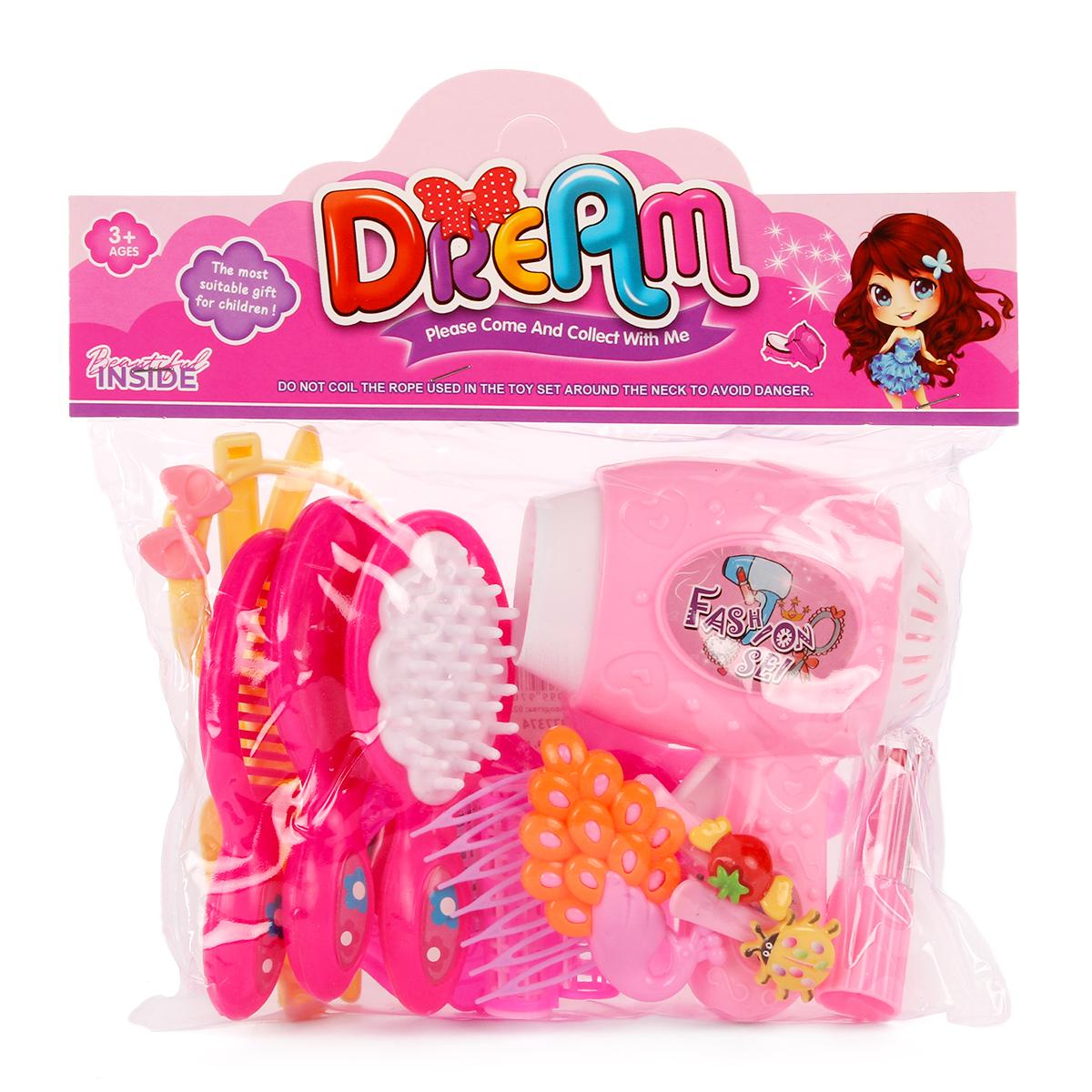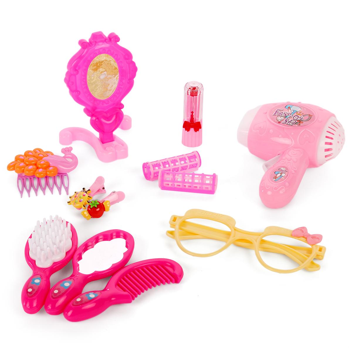 Набор парикмахера для девочек, 12 аксессуаров, пластик, розовый/желтый