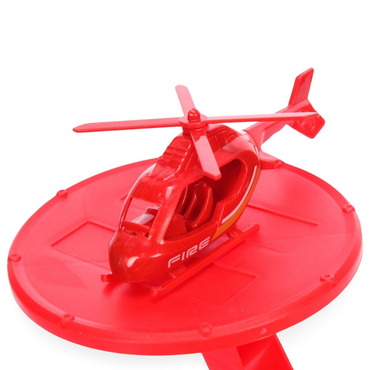 Набор включает 32 детали, среди которых парковка с двумя уровнями, вертолет и два автомобиля: красный внедорожник и белый легковой автомобиль. Все элементы выполнены из прочного пластика, что обеспечивает долговечность и безопасность во время игры. Парковка оснащена площадкой для вертолета и наклонной рампой для спуска автомобилей, что добавляет динамики в игру.