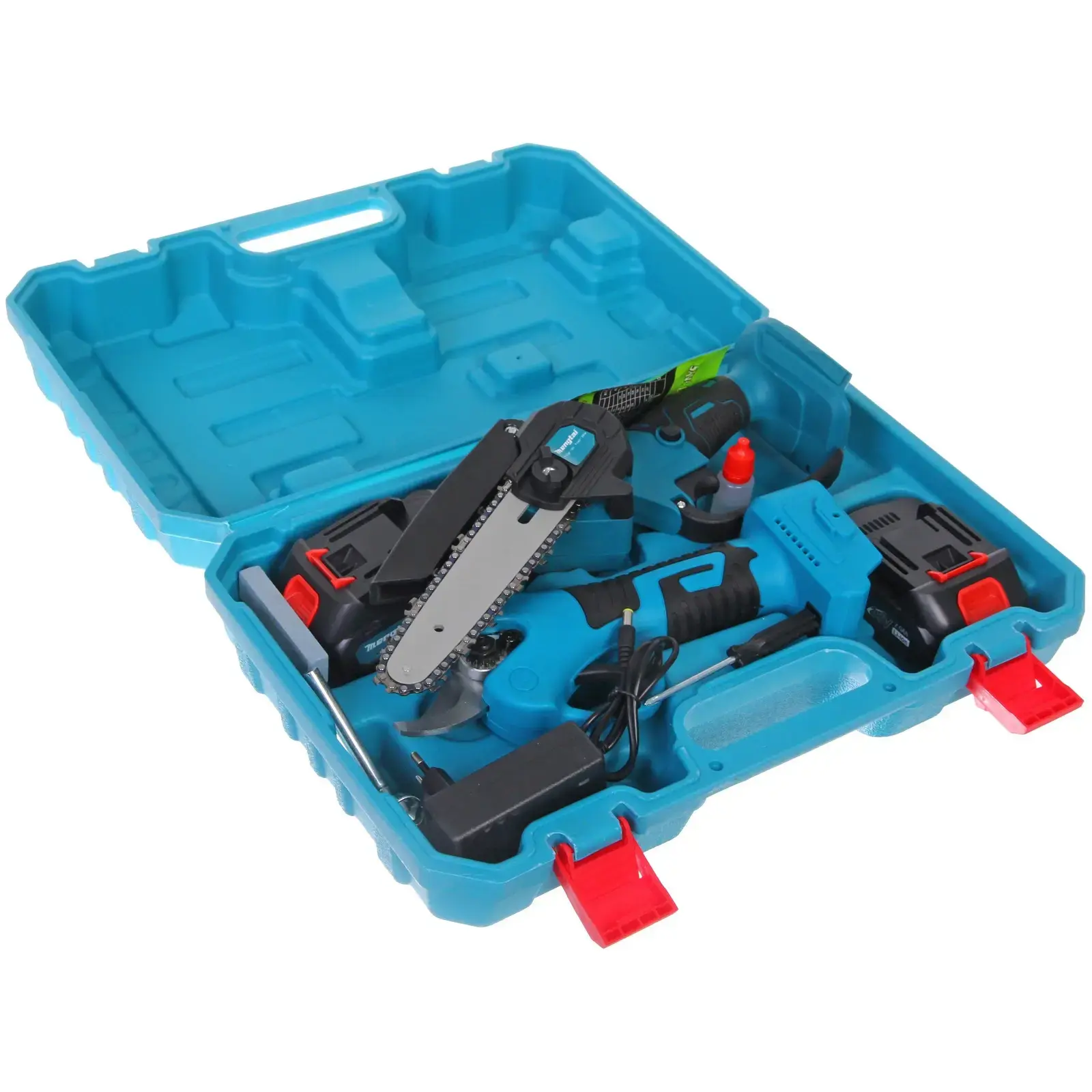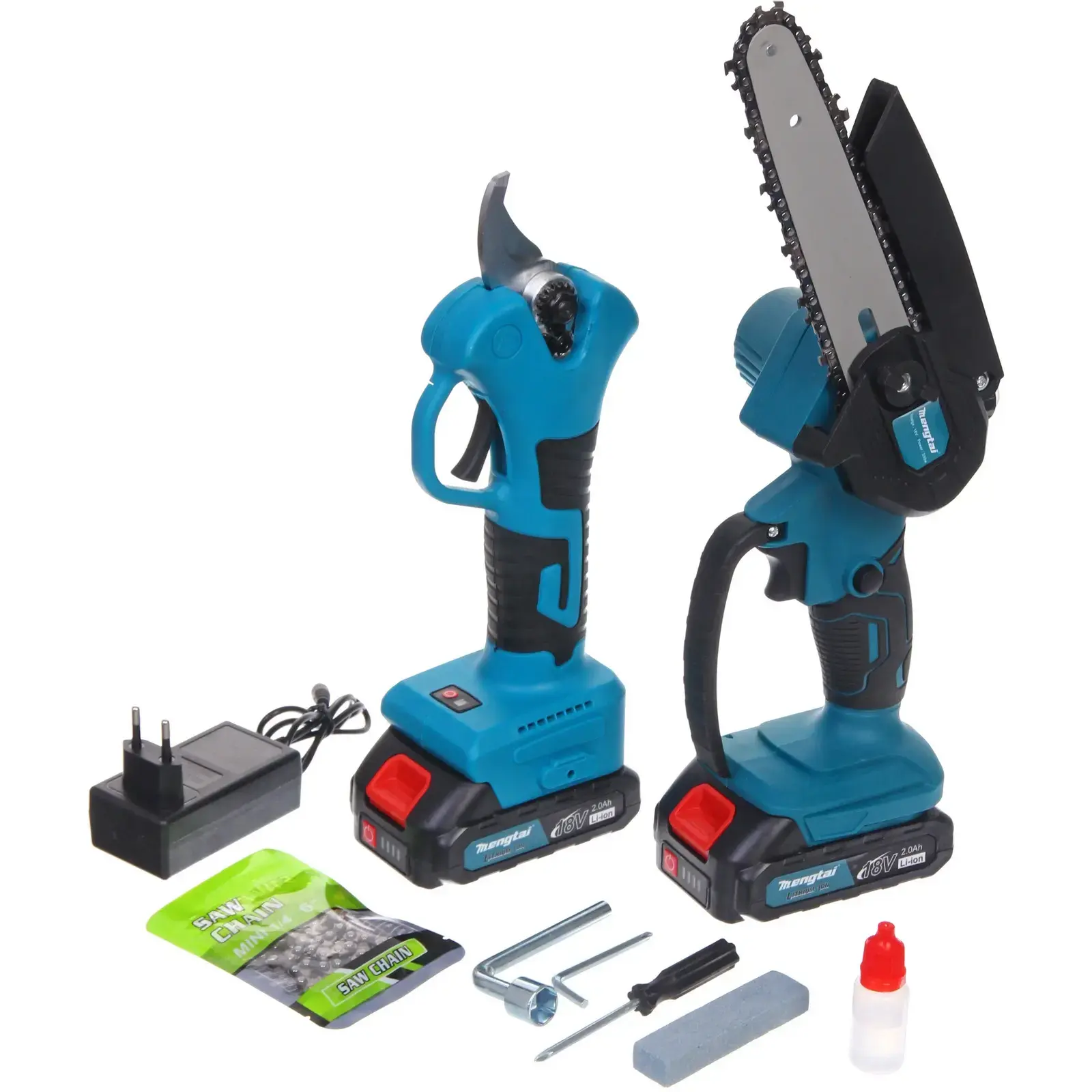 Выбирая набор Mengtai, вы получаете надежные и качественные инструменты, которые помогут вам в любых садовых задачах. Аккумуляторная цепная пила с длиной шины около 25 см и секатор с изогнутыми лезвиями обеспечивают высокую точность и безопасность при работе. В комплект также входит зарядное устройство и дополнительные аксессуары, что делает его идеальным решением для вашего сада.