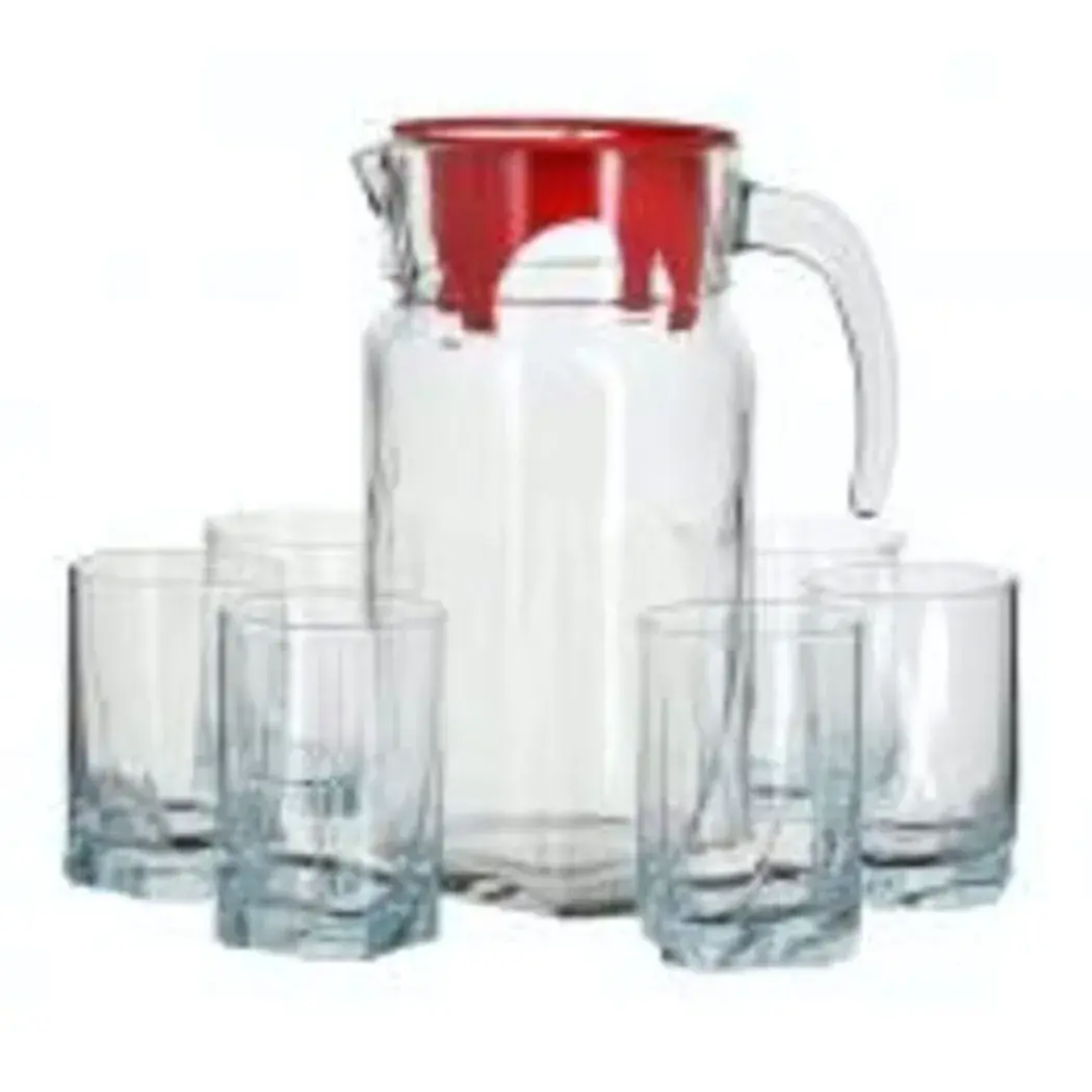 Набор питьевой 'Луна', кувшин 1700мл + 6 стаканов, стекло, красная крышка