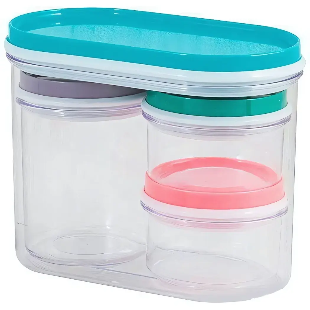 Ищете идеальное решение для хранения продуктов и мелких предметов? Наш универсальный набор пластиковых банок для хранения состоит из 4 контейнеров, которые помогут вам организовать пространство на кухне и в доме. Прозрачный материал позволяет легко видеть содержимое, а разнообразные размеры и цвета крышек добавляют яркие акценты в ваш интерьер.