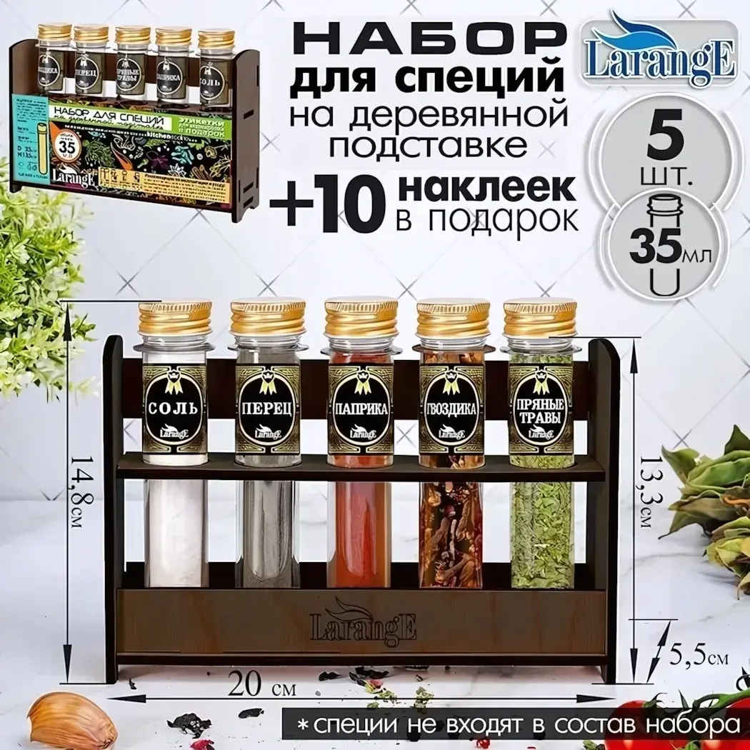 Этот набор ёмкостей для специй станет незаменимым помощником на вашей кухне. Он не только упрощает хранение, но и добавляет стиль в интерьер. Пластиковые ёмкости объемом 35 мл идеально подходят для хранения различных специй, а деревянная подставка обеспечивает удобный доступ и порядок на кухне.
