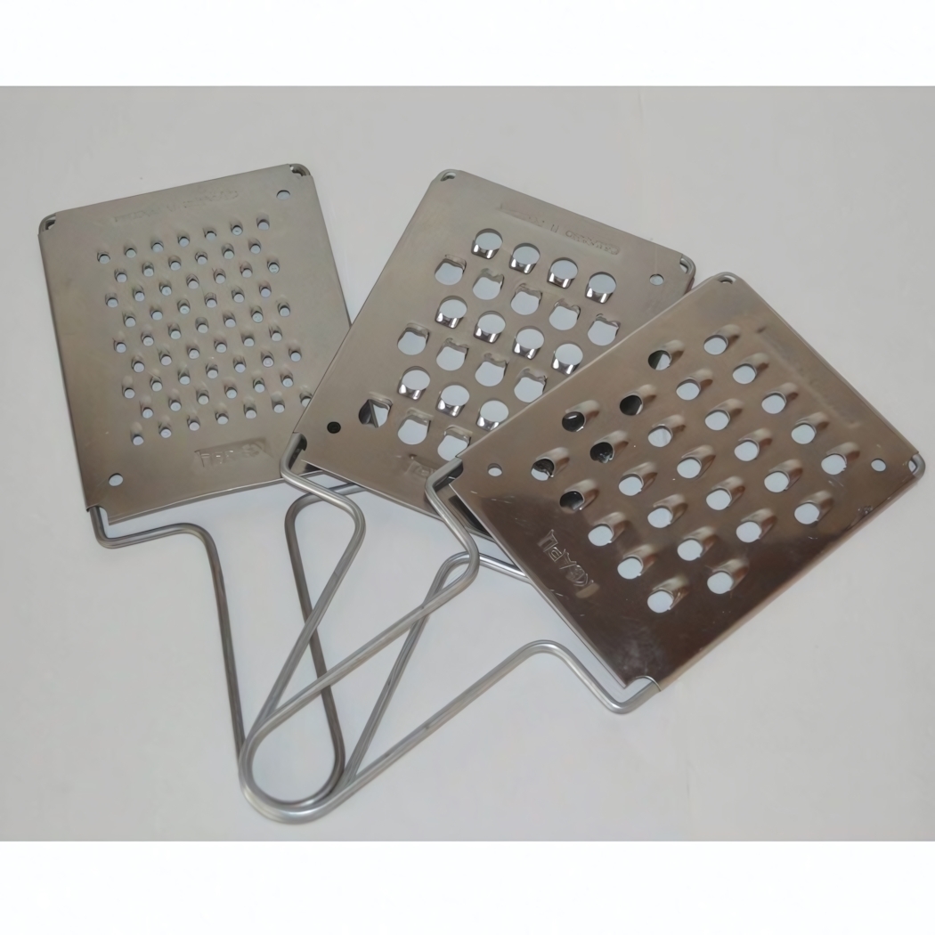 Разнообразие поверхности каждой терки обеспечивает максимально эффективное натирание различных продуктов без повреждения поверхности. Они легко моются и не занимают много места при хранении — это незаменимый инструмент для домашней кухни или профессиональных кухонных помещений.