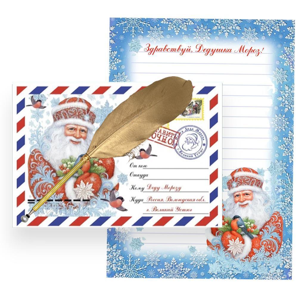 Набор включает в себя красивое письмо или открытку с праздничным дизайном, выполненную из качественной бумаги, а также элегантную перьевую ручку, изготовленную из прочного пластика. Он предназначен для использования в праздники, деловых или личных поздравлениях, что делает его универсальным и практичным подарком.