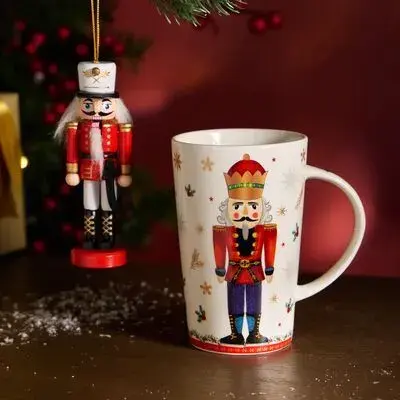 Этот изящный набор объединяет фарфоровую кружку объемом 385 мл и яркую елочную игрушку в виде знаменитого Щелкунчика. По мотивам любимой многими рождественской истории, он станет настоящим украшением вашего праздника и подарит ощущение волшебства с первого взгляда.