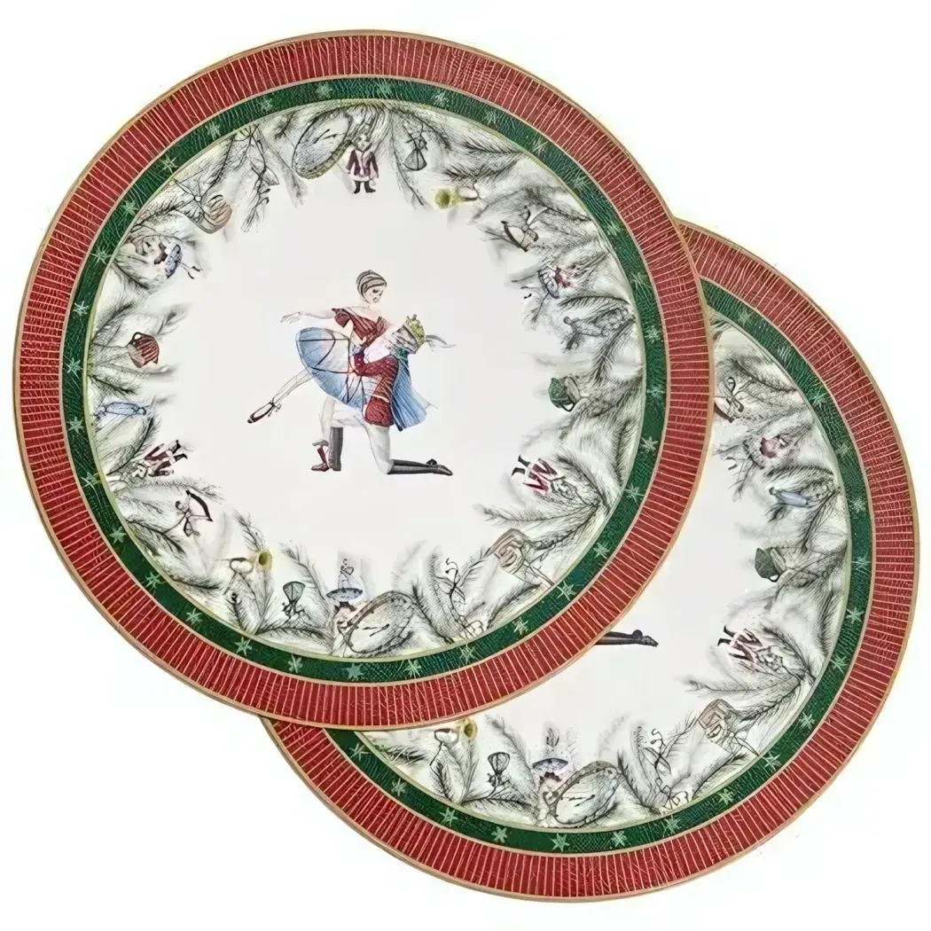 Создайте неповторимое новогоднее настроение с декоративной подстановочной салфеткой «Щелкунчик». Яркий рисунок в центре с фигурками в праздничных костюмах, орнамент по краю с ветками, игрушками и золотистыми акцентами превращает любой прием пищи в особенный момент. Эта салфетка не только украшает стол, но и защищает его поверхность, помогая сохранить чистоту и порядок во время застолий.