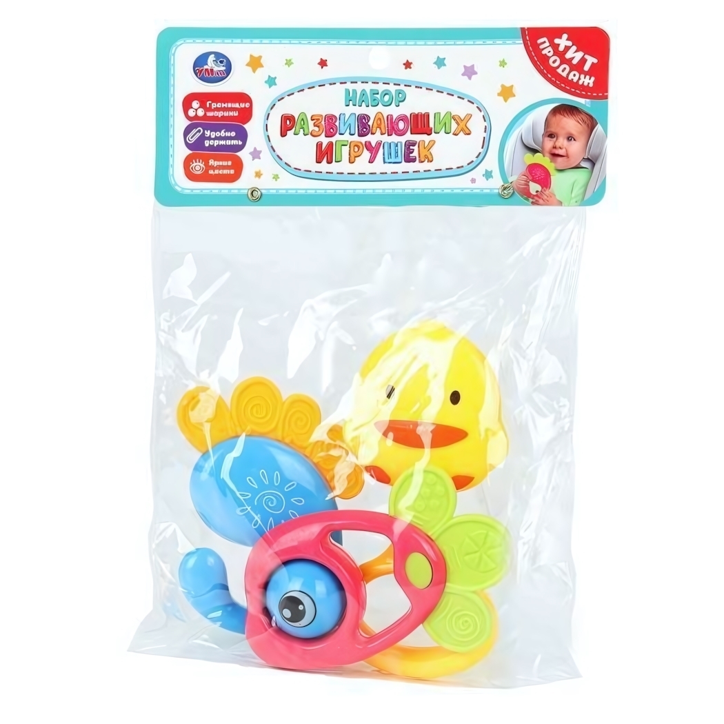 Этот набор из 3 развивающих игрушек создан специально для малышей, чтобы обеспечить им яркое и безопасное развлечение. Благодаря ярким цветам и округлым формам, эти погремушки отлично стимулируют зрительное восприятие и тактильные ощущения, а гремящие элементы развивают слуховое восприятие и внимание ребенка. Игрушки удобно держать и они способствуют развитию мелкой моторики и координации движений.