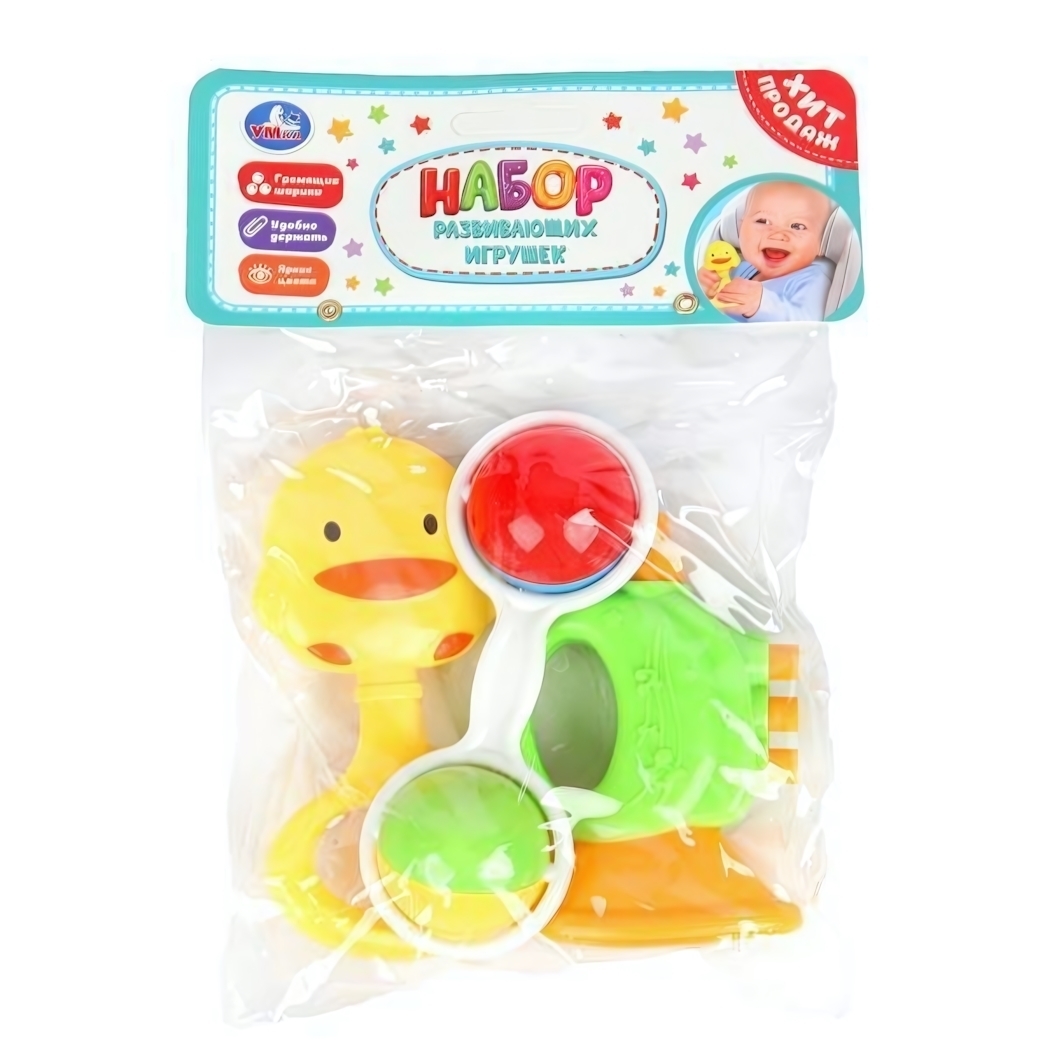 Эта коллекция из трёх ярких погремушек «Умка» — идеальный способ поддержать развитие ребёнка с раннего возраста. Благодаря ярким цветам, простым формам и мягкому материалу ребёнок будет с удовольствием держать, крутить и слушать внутренний барабан, развивая зрение, слух и мелкую моторику.