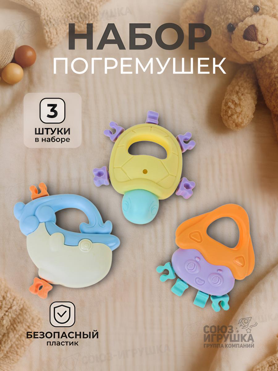 Набор погремушек для новорожденных, 3 шт., развивающие игрушки, пластик, микс цветов