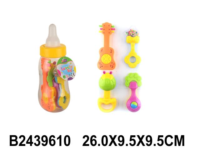 Подарите своему ребёнку радость первых игр и тактильных открытий с этим красочным набором погремушек. Четыре разнообразные игрушки в удобной бутылочке-упаковке станут отличным подарком для новорожденного и помогут в его гармоничном развитии с первых месяцев жизни.