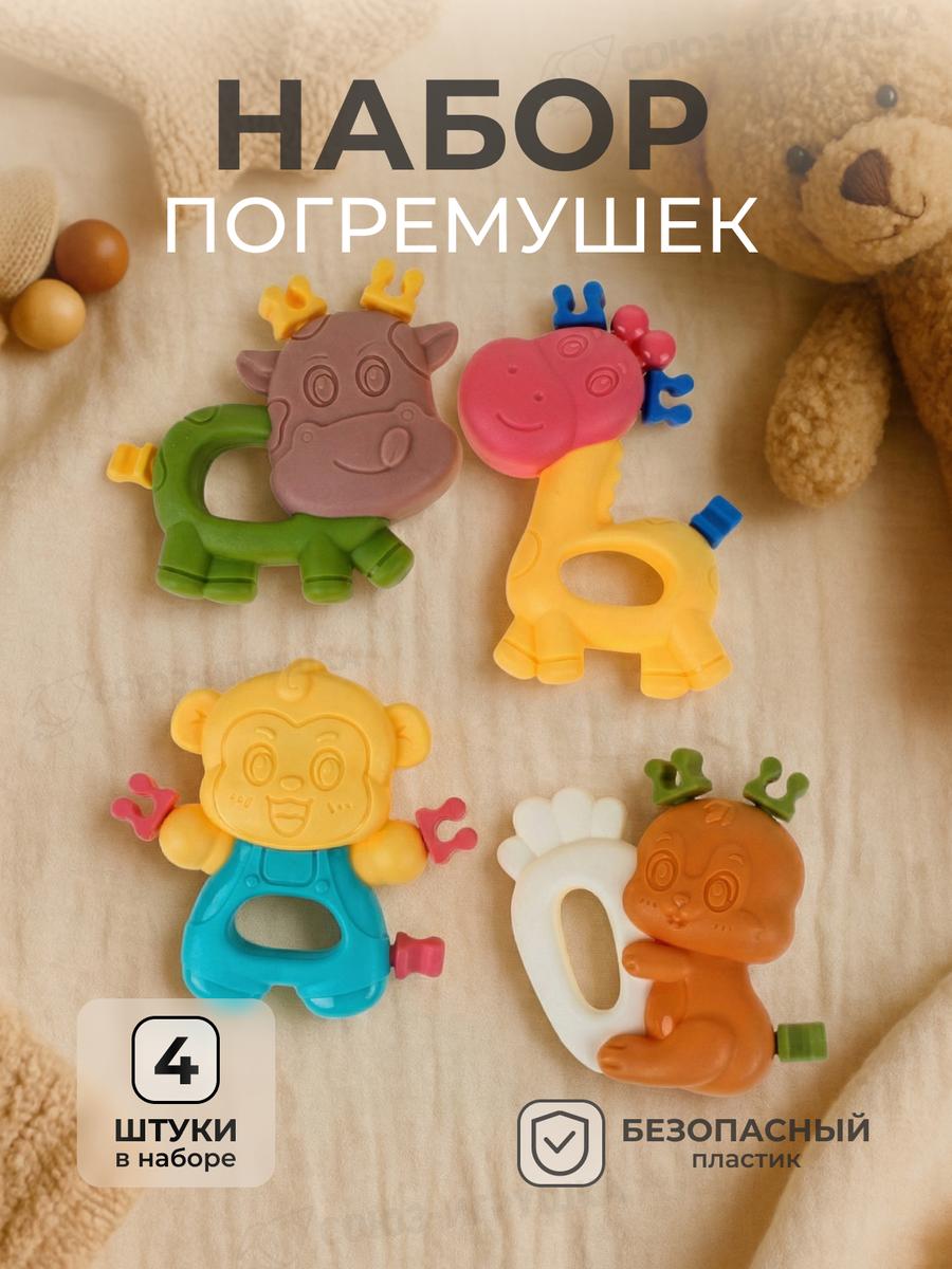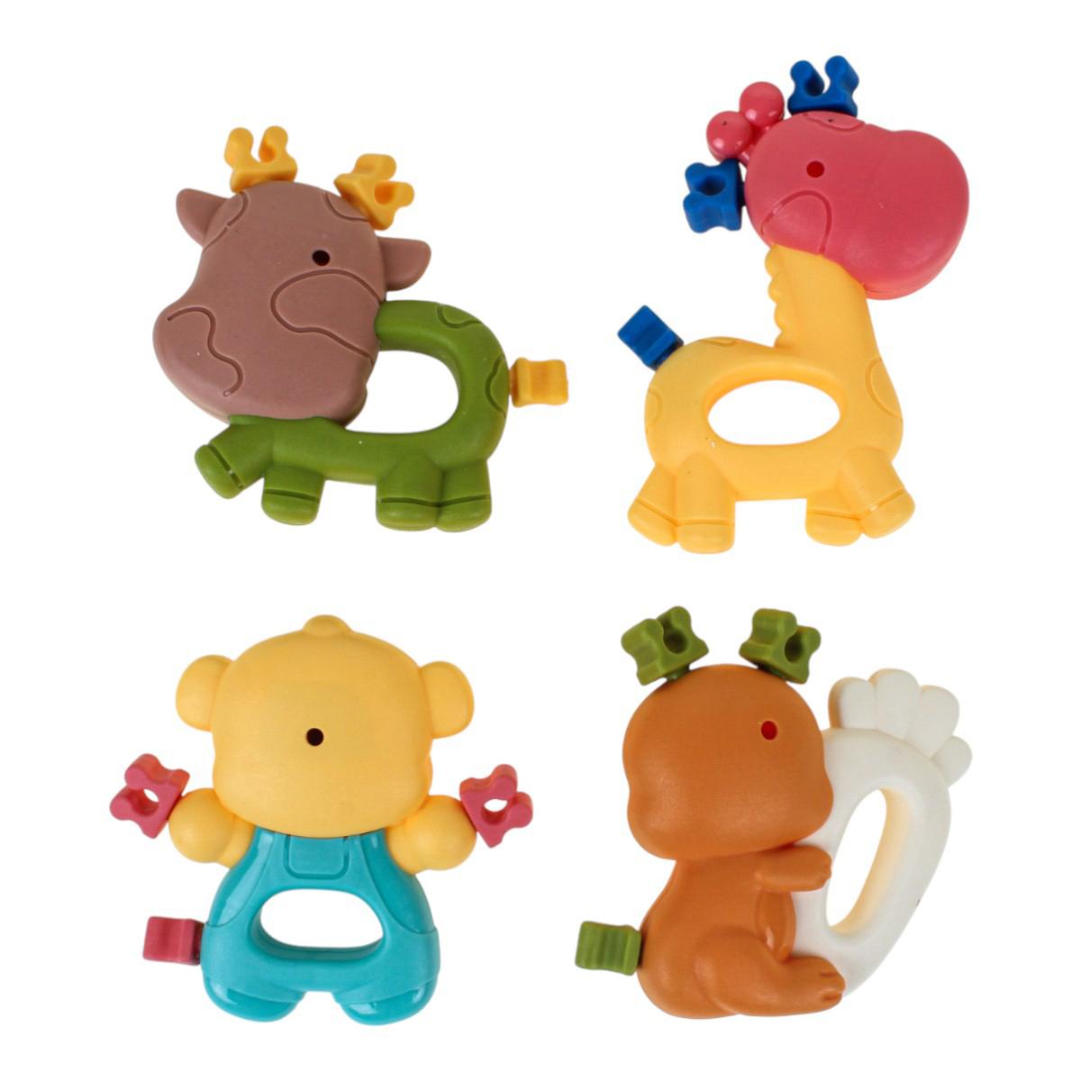 Набор погремушек для новорожденных, 4 штуки, развивающие игрушки в виде животных, микс цветов
