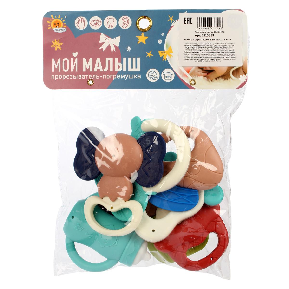 Набор погремушек-прорезывателей 8шт, безопасный, для малышей 0+, резина/пластик