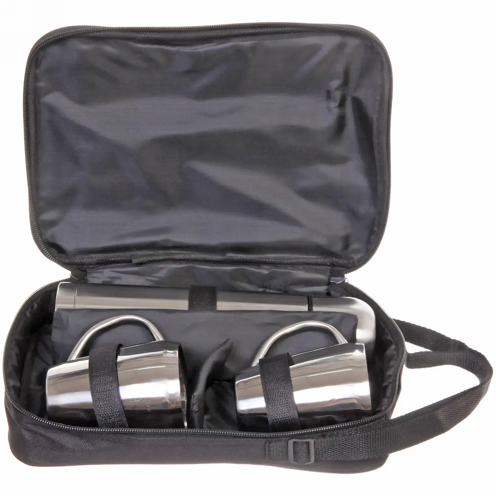 Многослойные стенки термоса предотвращают ожоги рук, а эргономичная форма кружек обеспечивает удобный хват. Сумка-чехол с водоотталкивающей пропиткой защитит ваши вещи от непогоды и брызг во время транспортировки.