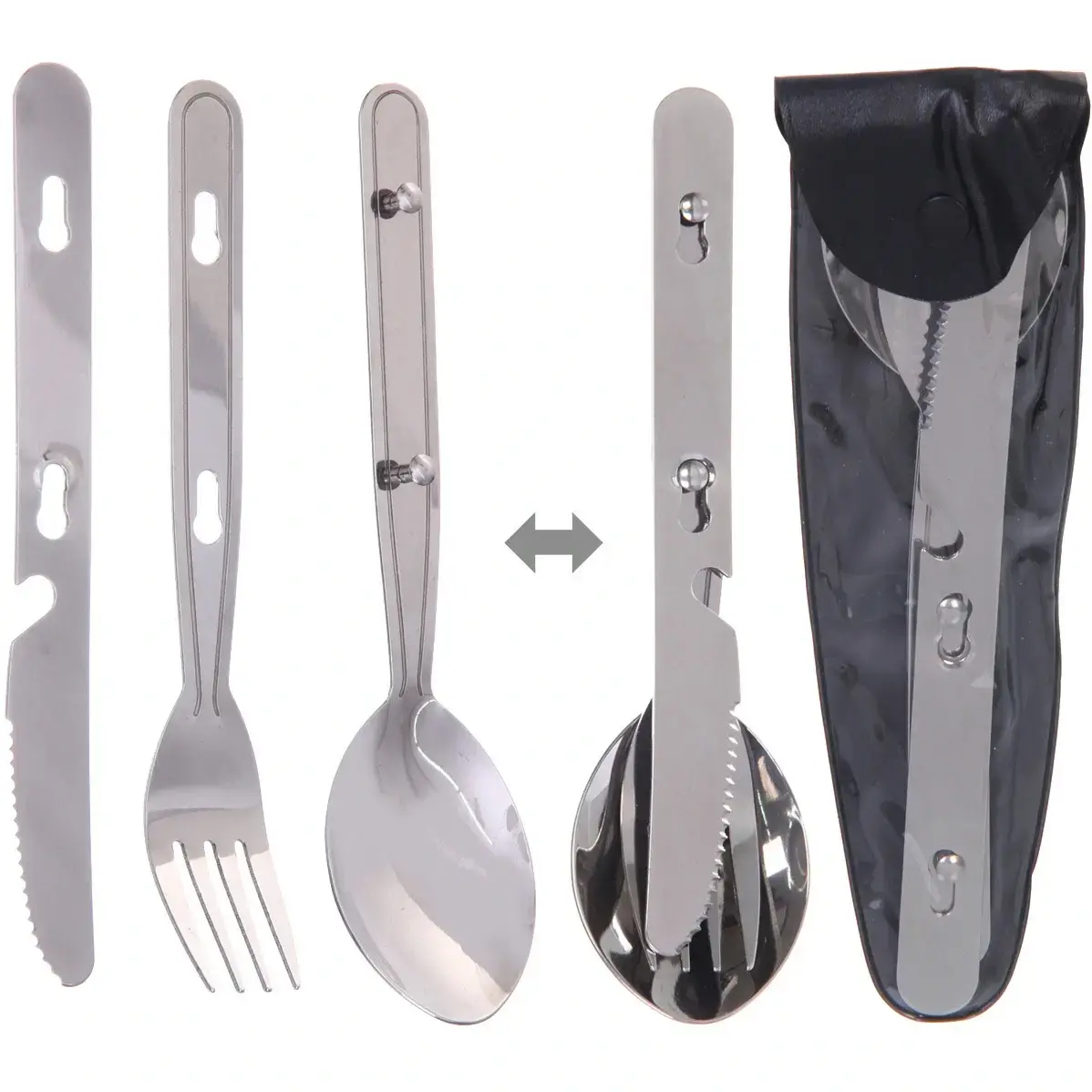В набор входят нож, вилка и ложка, которые легко собираются в компактную рукоятку для удобного хранения и транспортировки. Это делает набор идеальным спутником для кемпинга, путешествий или просто для использования на даче. Благодаря своей конструкции, приборы подходят как для горячих, так и для холодных блюд, что делает их универсальными.