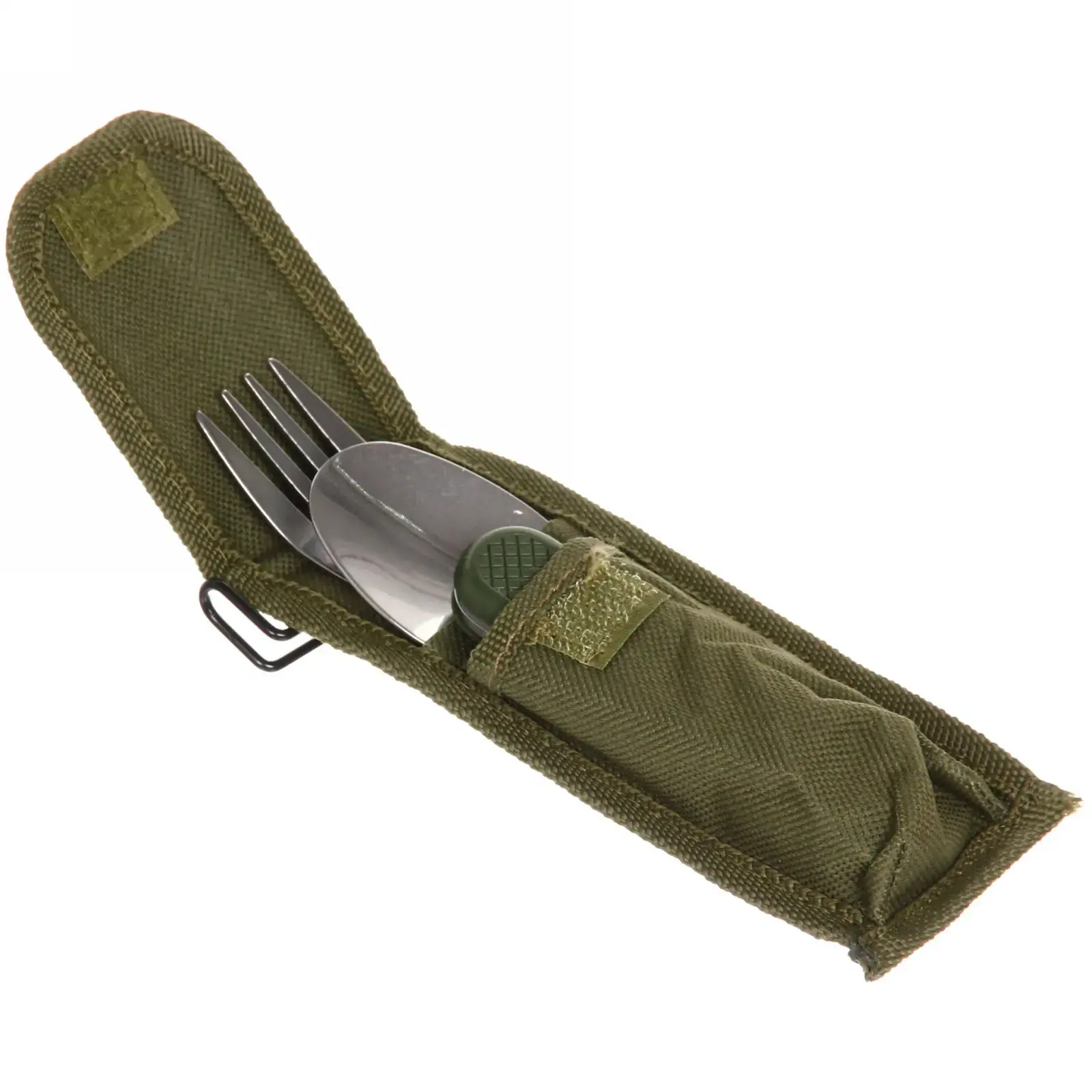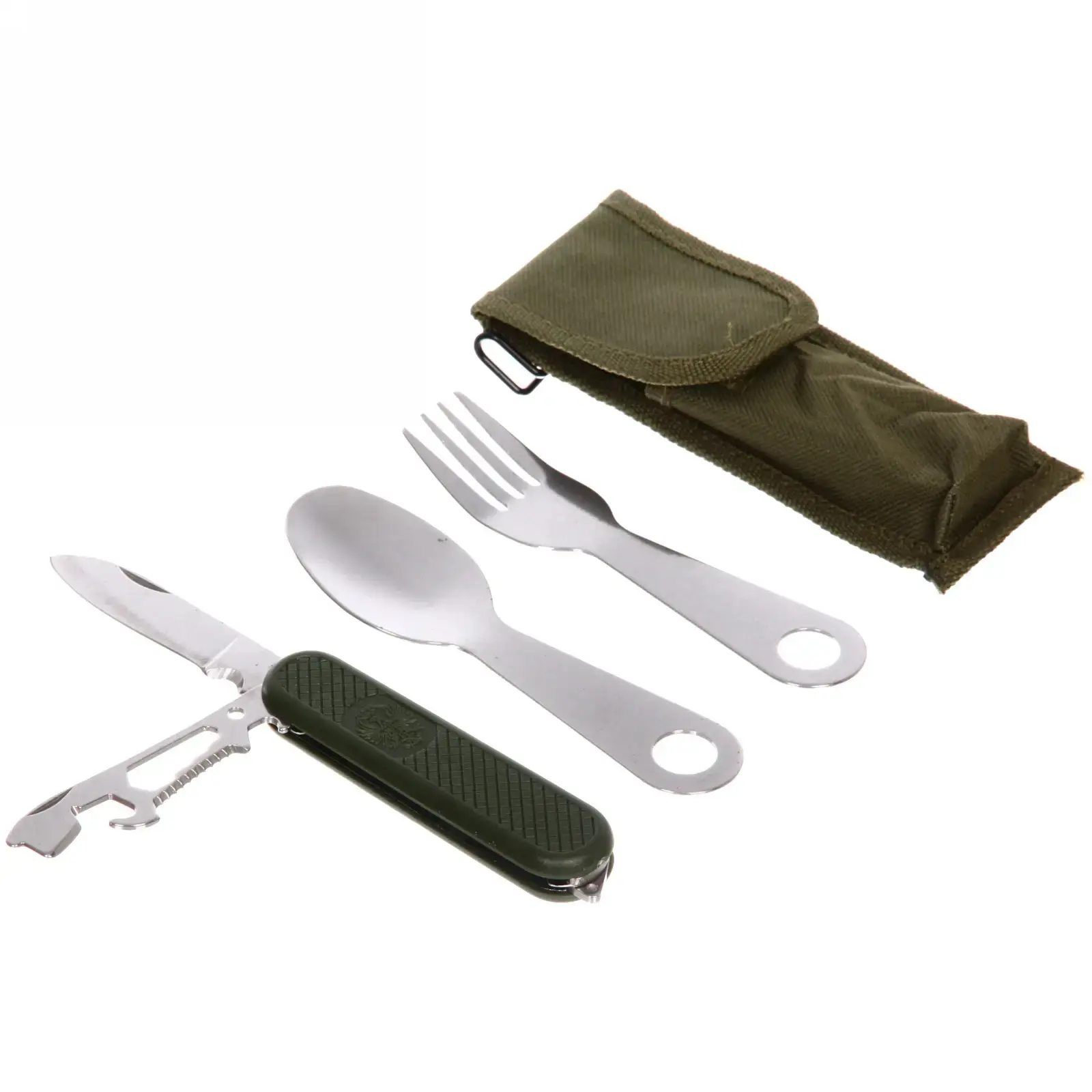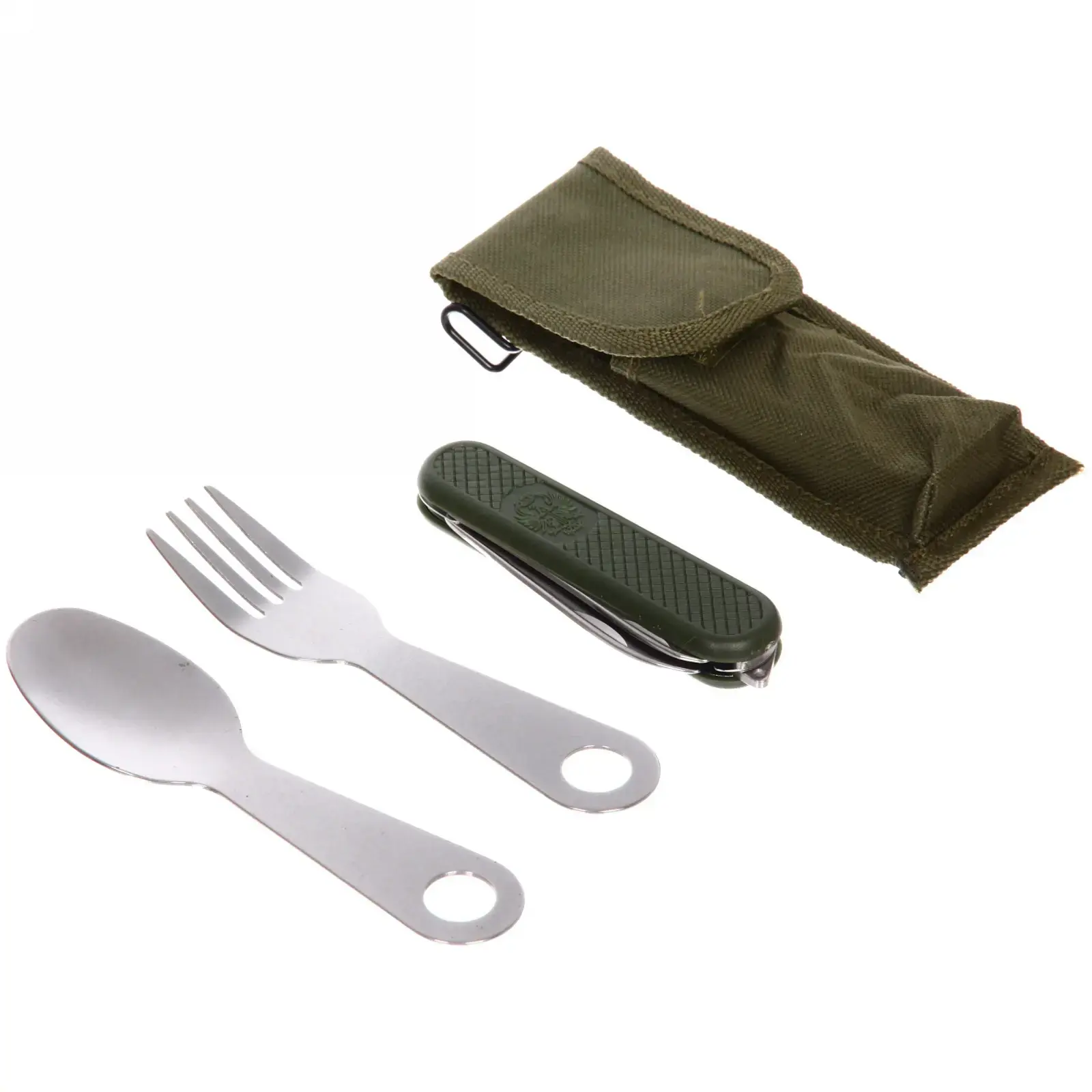 Набор столовых приборов «YK01», 3 в 1 с чехлом: ложка, вилка, нож-мультитул, нержавеющая сталь, зеленый пластик