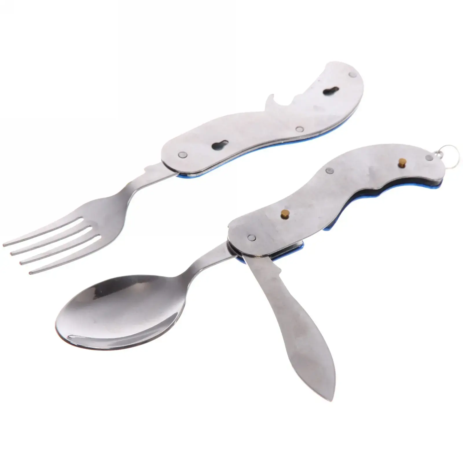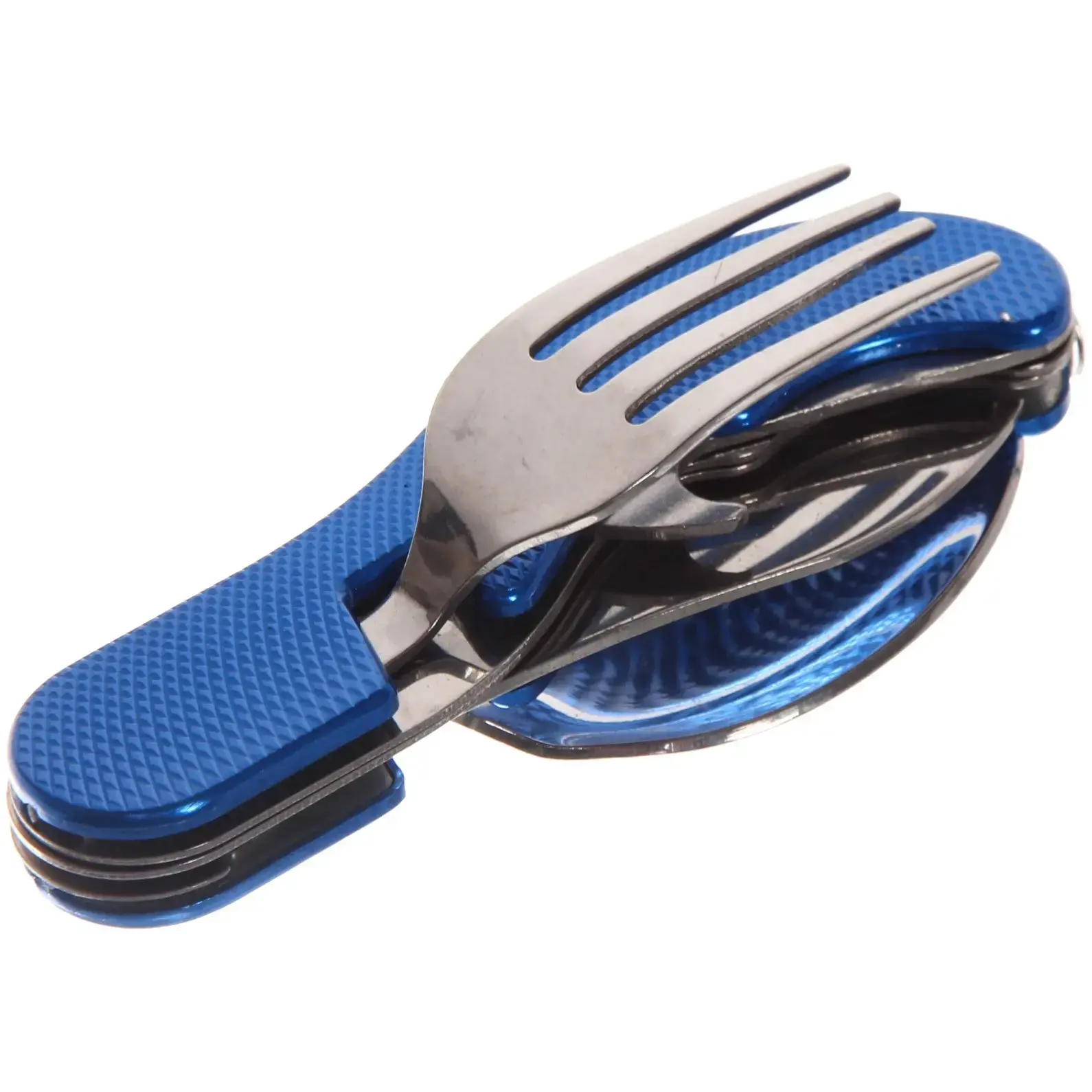 Набор столовых приборов 4 в 1, складной, металл, синий/серебристый, для походов и пикников