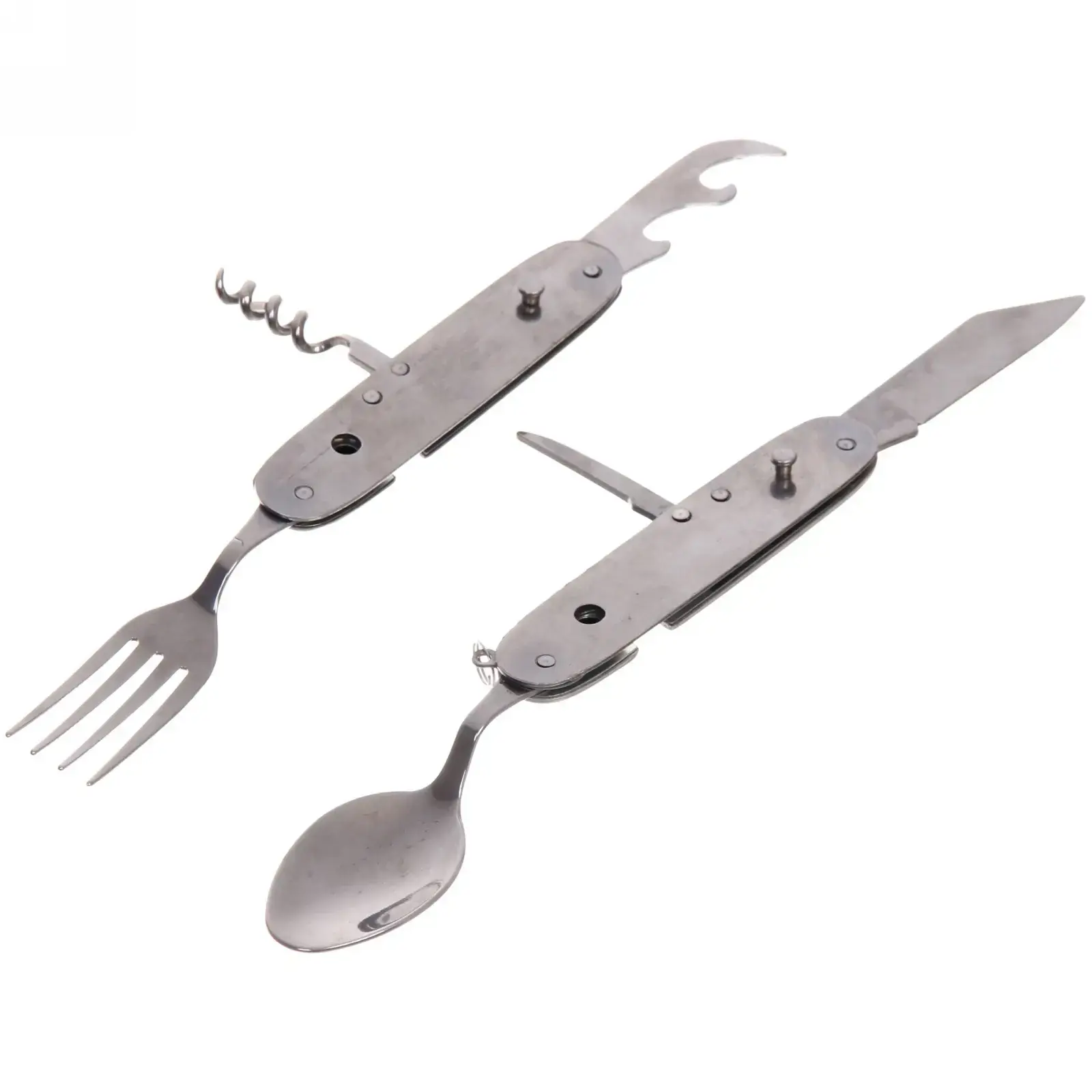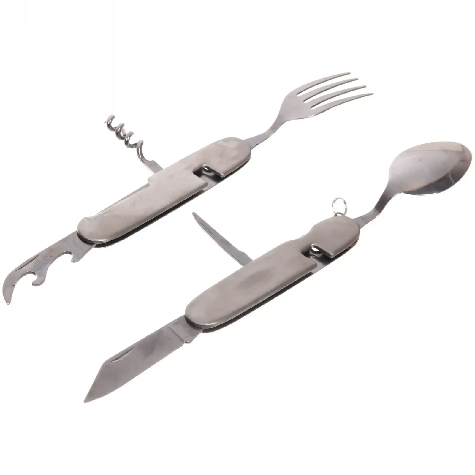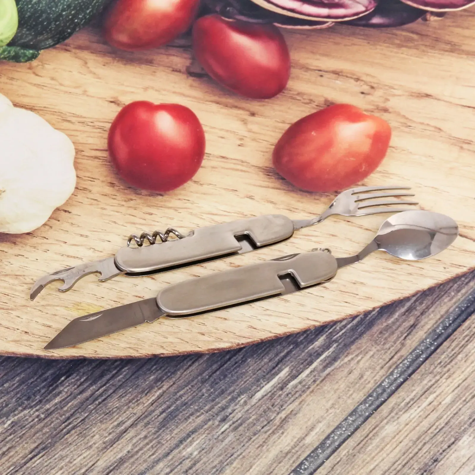 Набор походный 6 в 1, металлический, складные столовые приборы с открывалкой и штопором