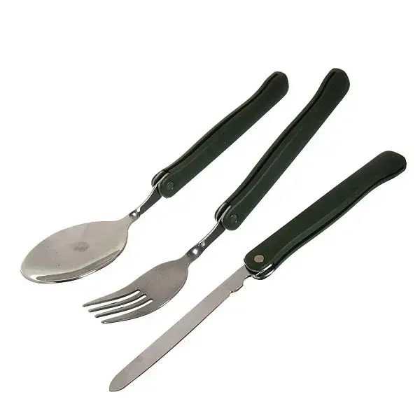 - В набор входят: нож с острым лезвием, вилка с тремя зубцами и глубокая ложка