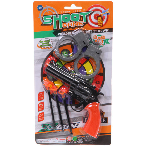 Набор полицейского «Стрелок» предназначен для активных игр на свежем воздухе и в помещении. Револьвер и наручники помогут развить воображение и творческие способности вашего ребенка, а также способствуют развитию моторики и координации движений. Дети могут разыгрывать различные сценарии, что делает игру не только веселой, но и полезной.