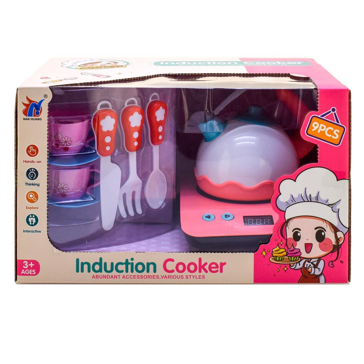 Игровой набор посуды "Induction Cooker" 9 предметов, пластик, розовый/белый