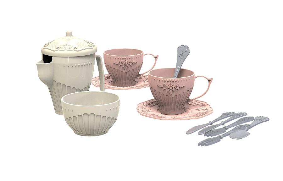 Набор предназначен для детей от 3 лет. Все предметы имеют оптимальные для детских рук размеры: чашки — 6×7 см, блюдца — 12 см в диаметре, сахарница — 8,5×7,5 см, кофейник — 8×9,5 см, столовые приборы — 11 и 13 см в длину. Сочетание нежных розовых и светло-бежевых оттенков создает гармоничную цветовую гамму, привлекательную как для девочек, так и для мальчиков.