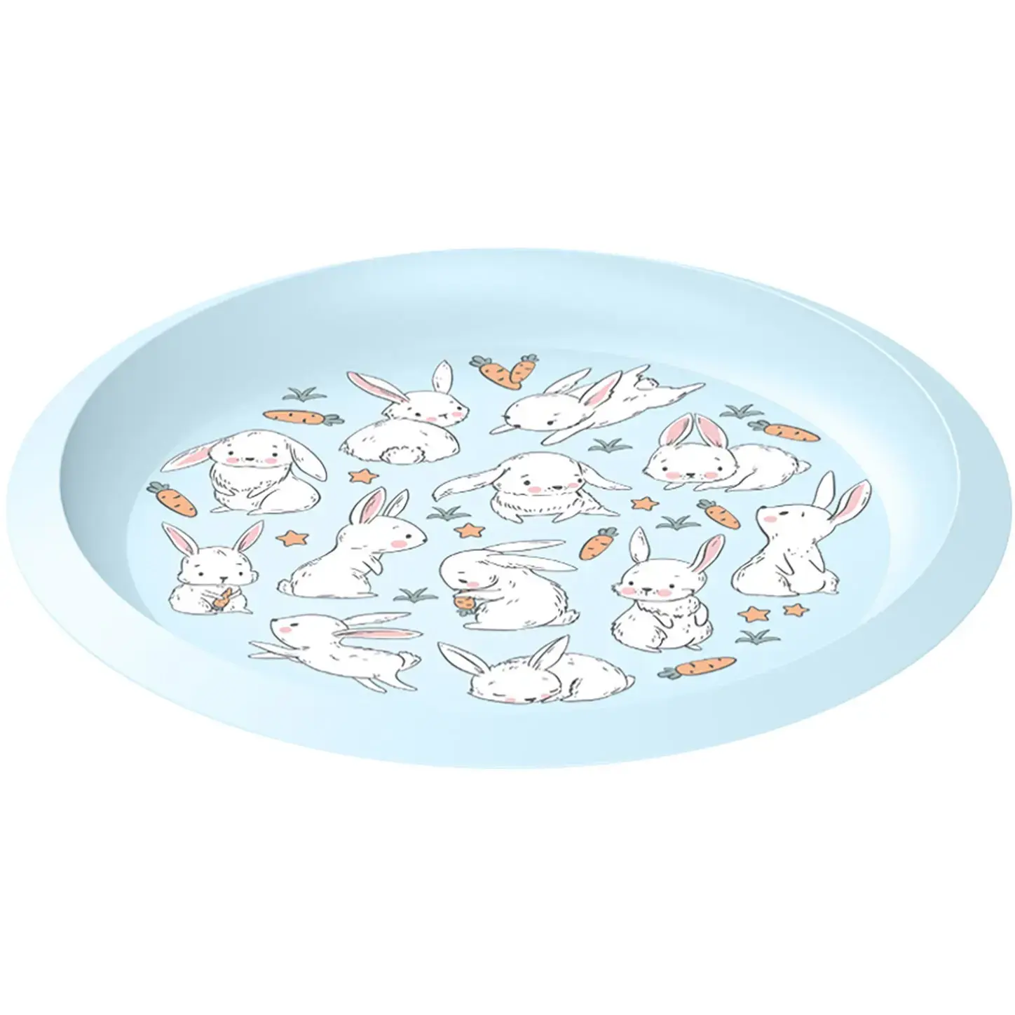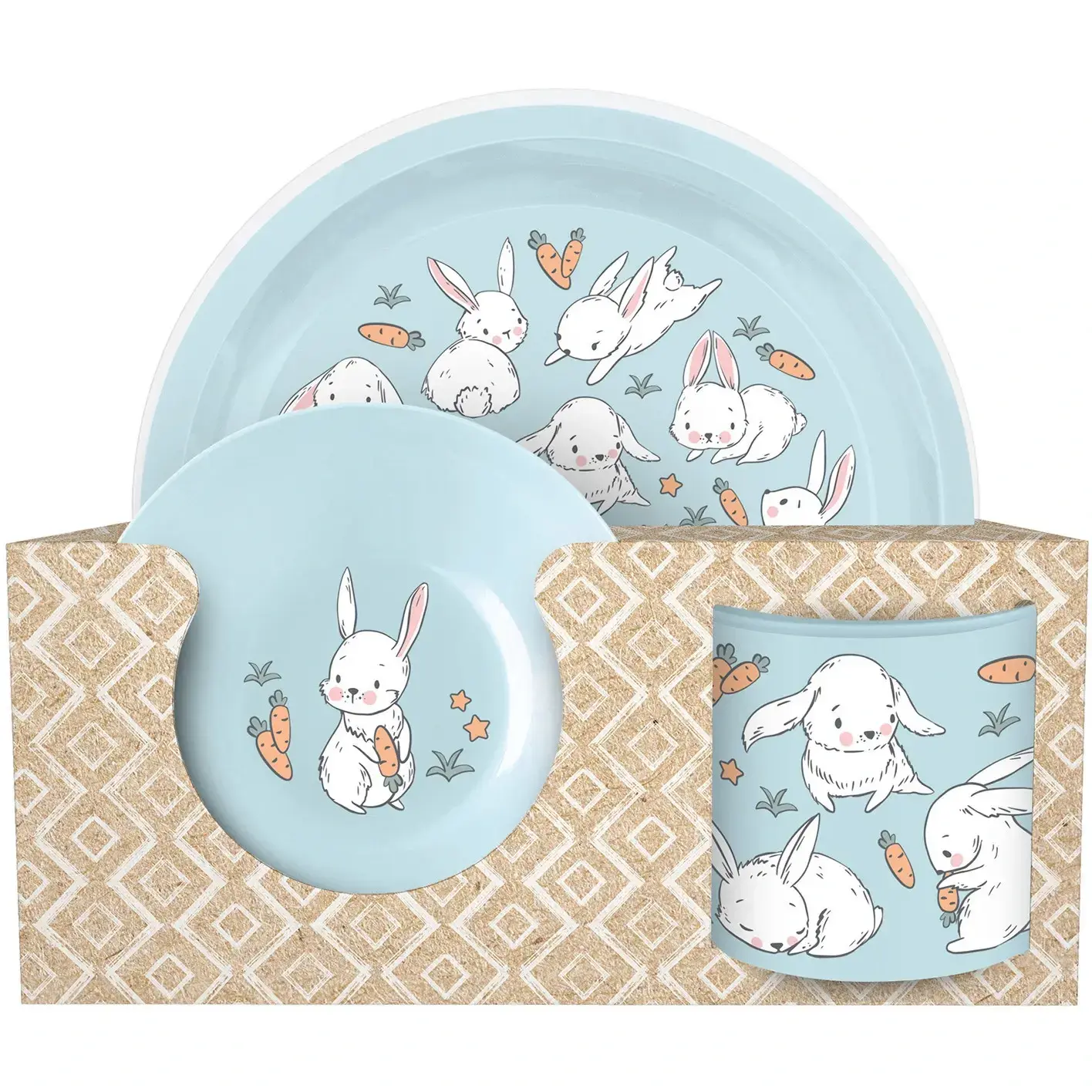 Этот набор посуды станет идеальным решением для вашего малыша. Он не только привлекателен внешне, но и безопасен для здоровья. Милая упаковка и яркие декоры с изображениями кроликов и морковок создают радостное настроение во время еды. Набор включает в себя глубокую миску, плоскую тарелку и кружку, что делает его универсальным для различных блюд.
