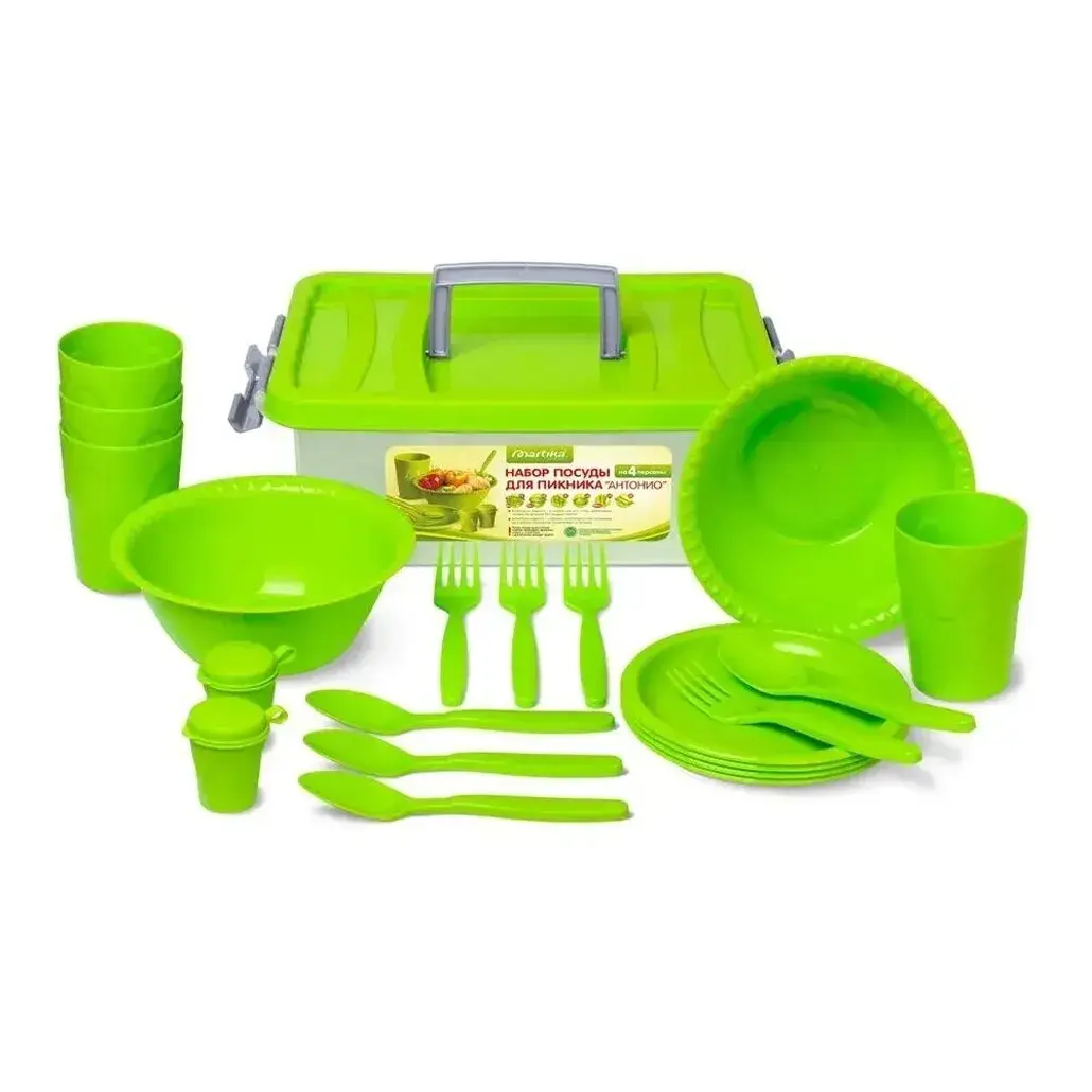 Набор посуды 'Антонио' для пикника на 4 персоны: стаканы, контейнеры, столовые приборы, пластик, цвет зеленый
