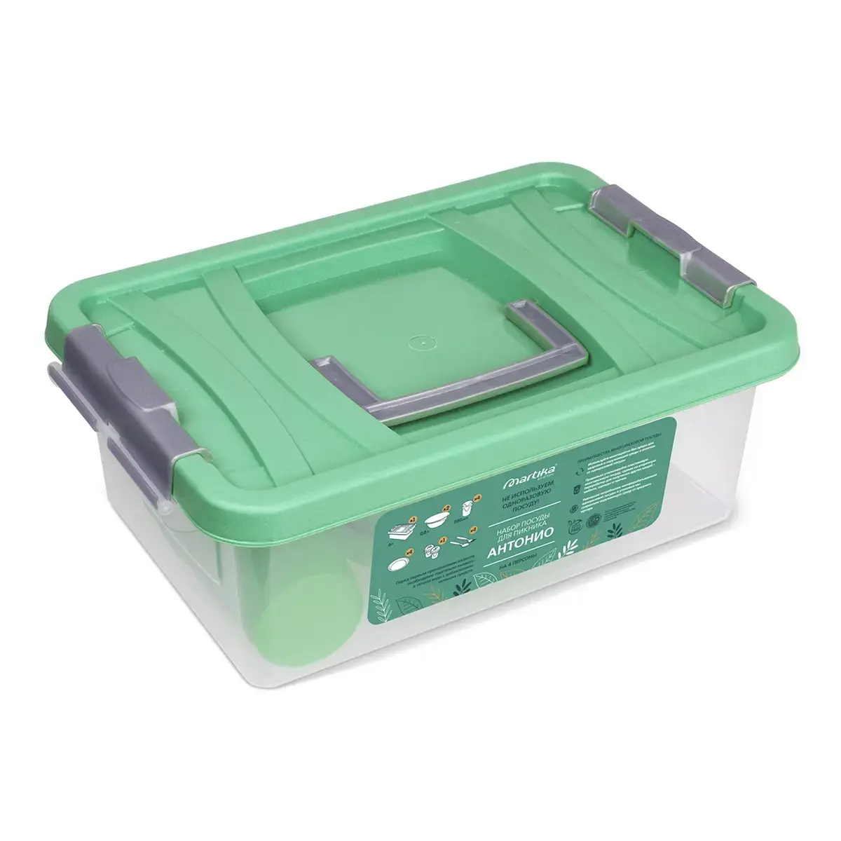 Проводите время на природе с комфортом благодаря компактному набору посуды «Антонио». Все необходимое для обеда или ужина уже упаковано в прочный пластиковый контейнер объемом 6л.