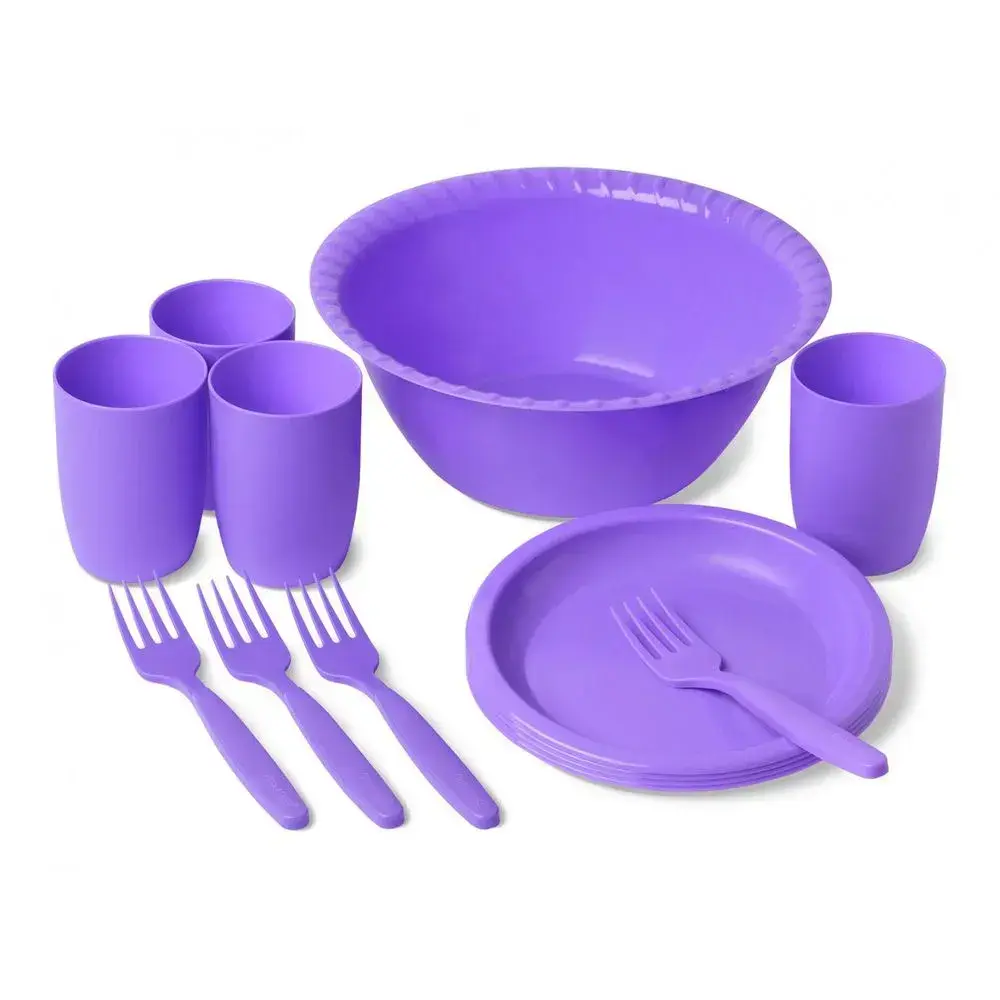 Комплект подойдёт любителям активного отдыха, семьям с детьми и организаторам выездных мероприятий. Лёгкие и небьющиеся предметы особенно практичны для использования на даче, в походах или во время пикника в парке. Благодаря продуманной комплектации вы сможете накрыть стол для полноценного обеда на свежем воздухе за считанные минуты.