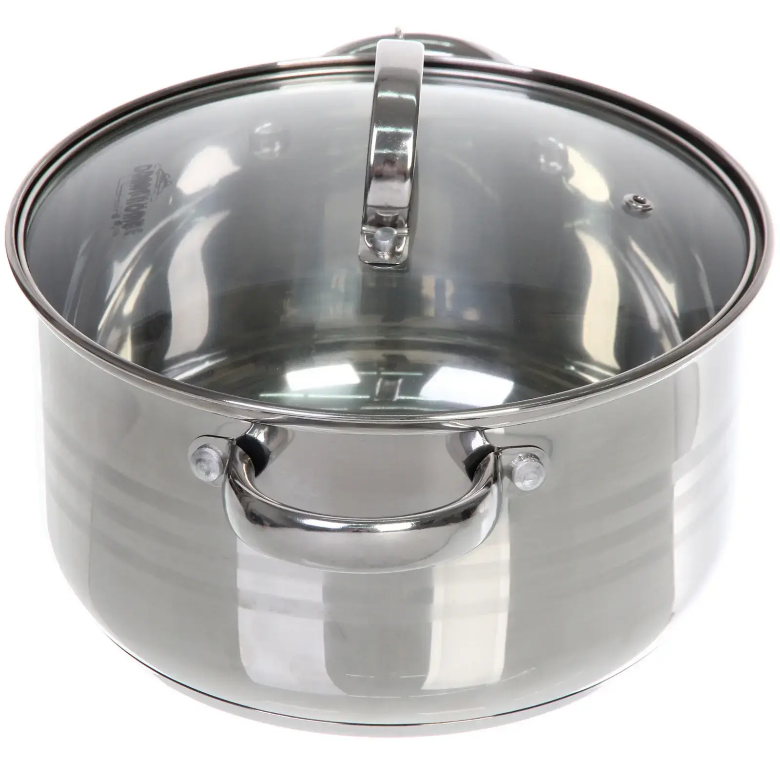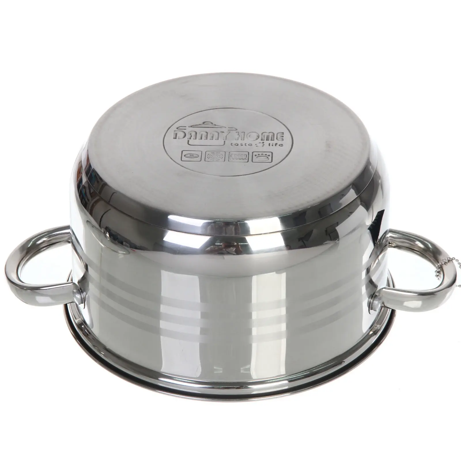 Кастрюли изготовлены из высококачественной нержавеющей стали, что гарантирует долговечность и надежность. Толстое дно с многослойным термоаккумулирующим материалом позволяет готовить быстрее и сохранять тепло дольше. Использование небольшого количества воды и минимального количества жира при жарке помогает сохранить питательные и вкусовые качества продуктов, что делает ваши блюда более полезными.