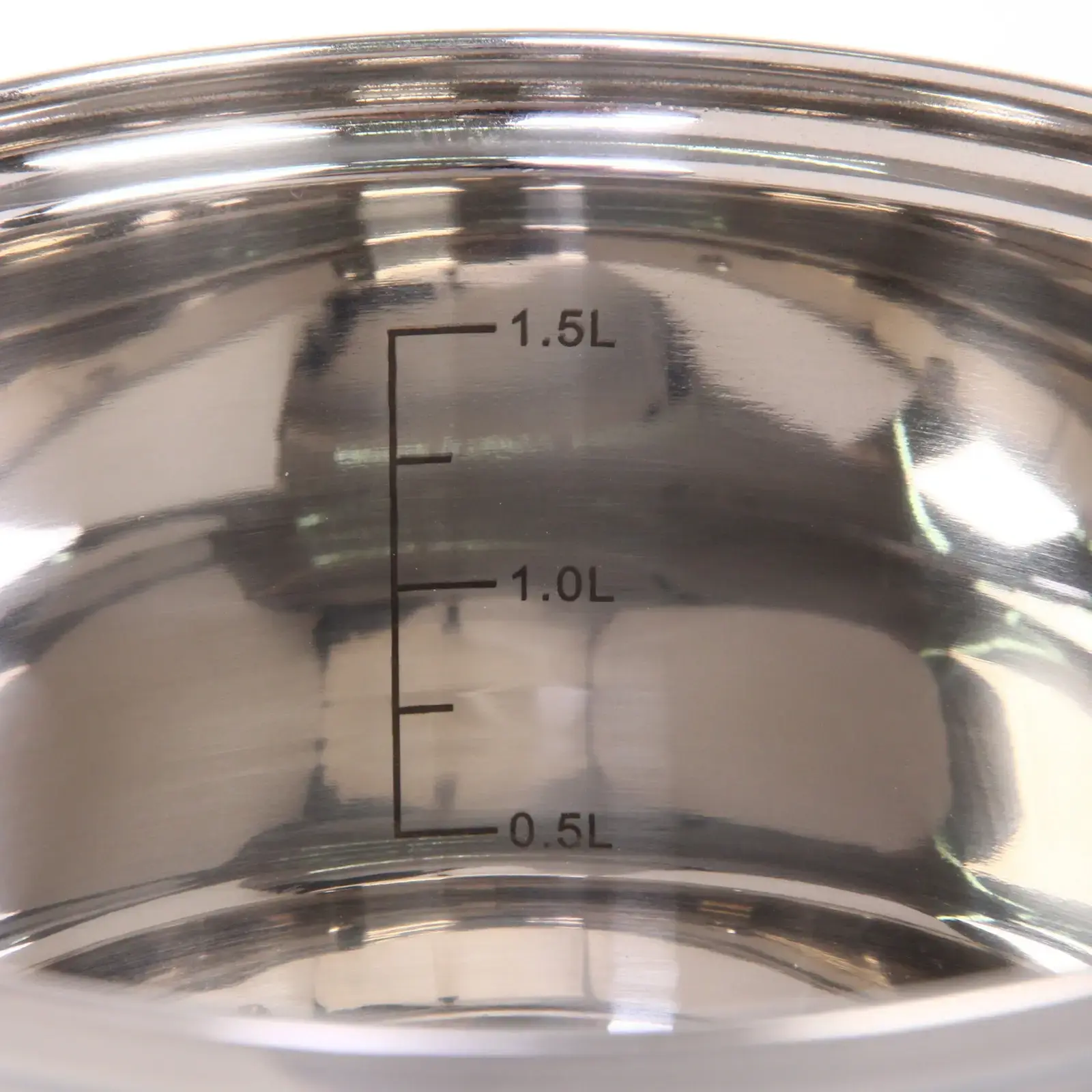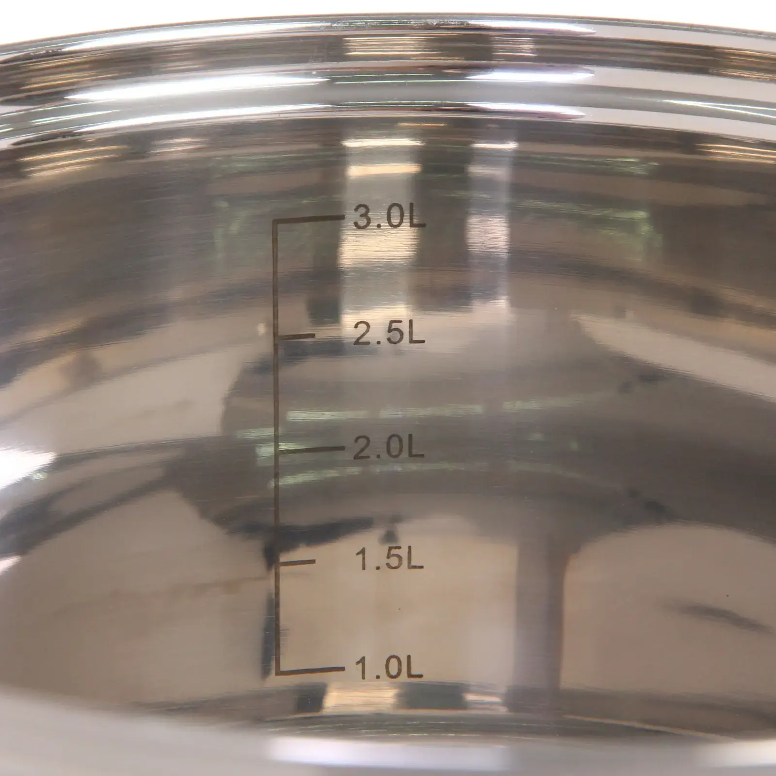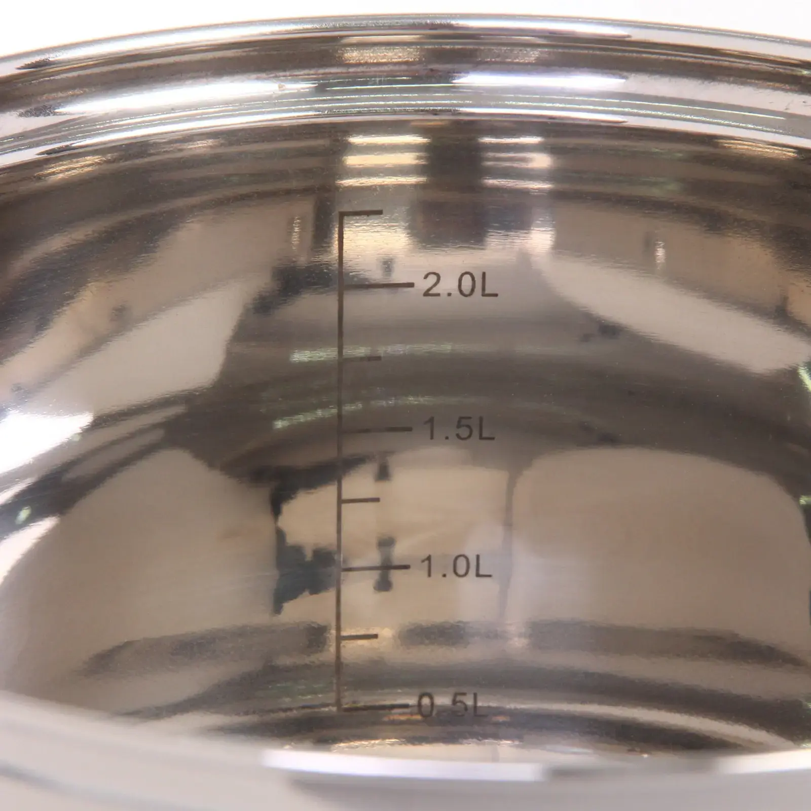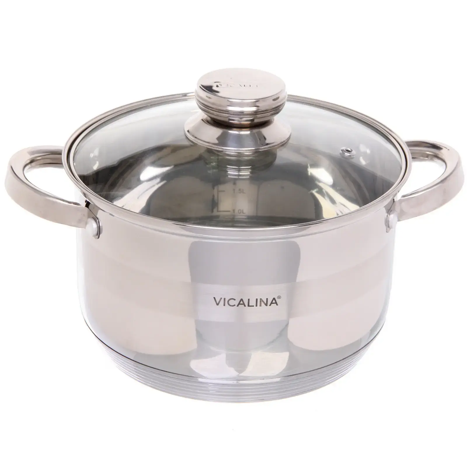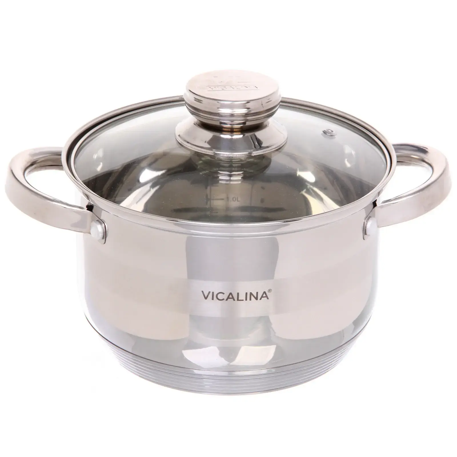 Кастрюли VICALINA изготовлены из высококачественной нержавеющей стали, что обеспечивает долговечность и надежность. Пятислойное капсулированное дно обеспечивает равномерное распределение тепла, что позволяет готовить блюда быстрее и экономичнее. Металлические клепанные ручки обеспечивают надежный захват и удобство при переноске, а мерная шкала внутри кастрюль позволяет точно контролировать объем ингредиентов.
