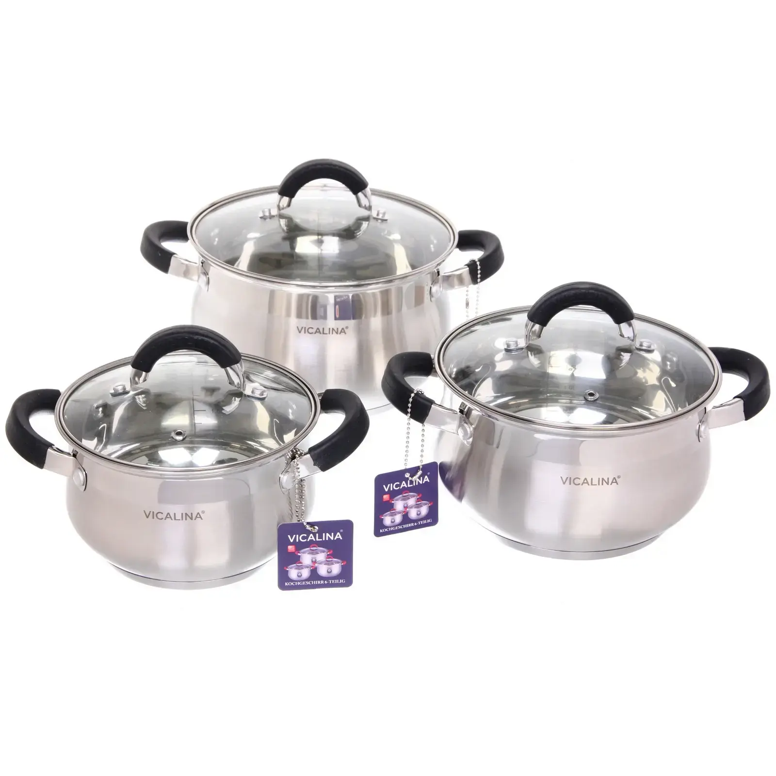 Набор кастрюль VICALINA 'VL-811' 3 предмета, нержавеющая сталь, 2.1/2.9/3.9л, стеклянные крышки, для всех плит