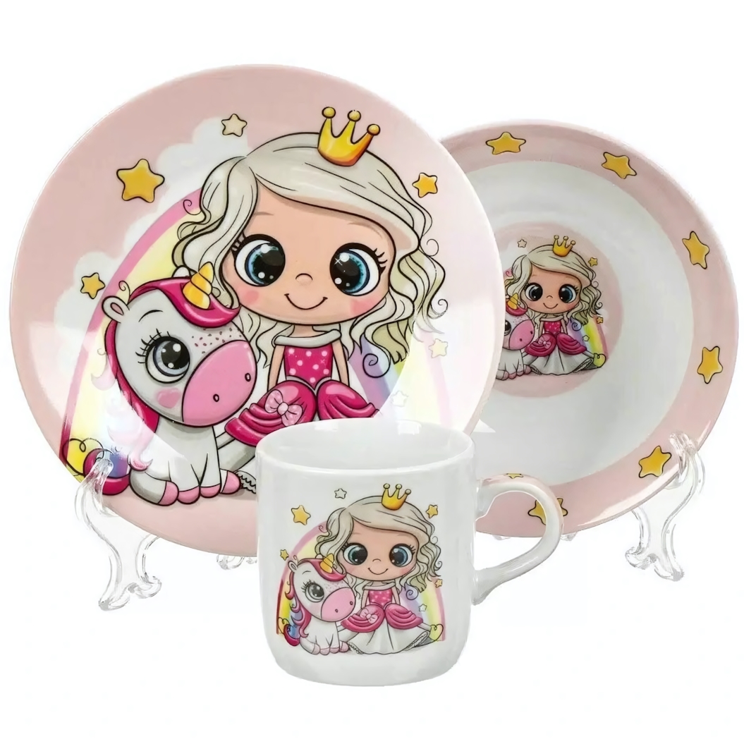 Набор детской посуды «Принцесса и единорог» — яркий и безопасный комплект для маленькой хозяйки