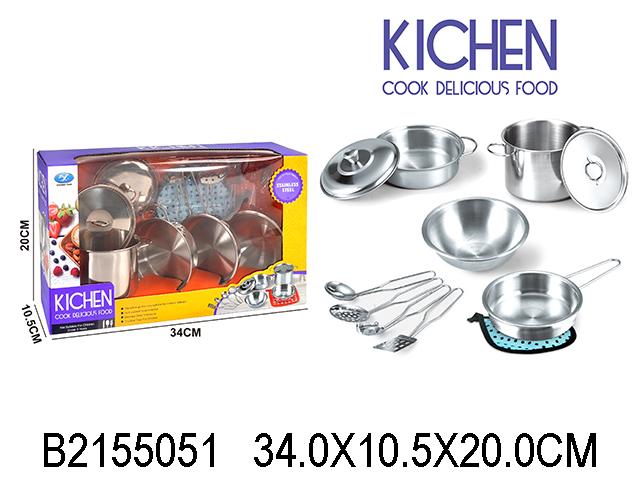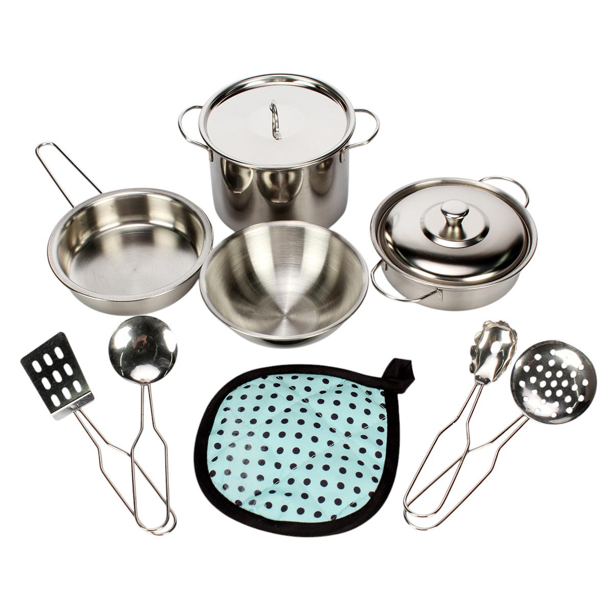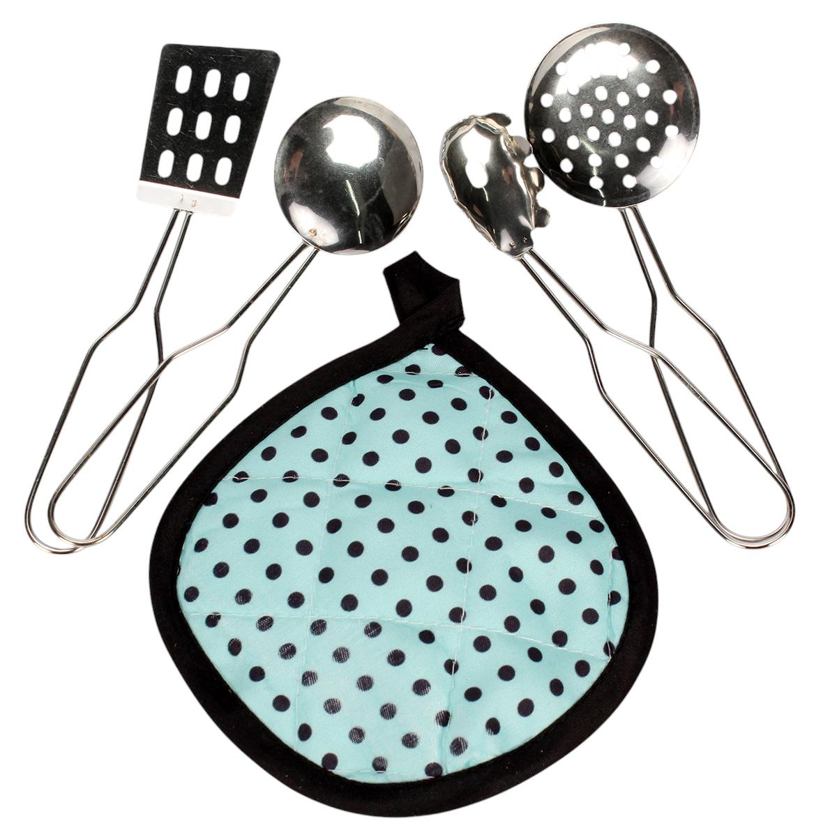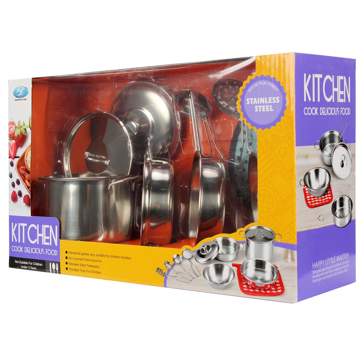 Все элементы выполнены из прочного металла с гладкой блестящей поверхностью, безопасной для детей при игровой эксплуатации. Реалистичный дизайн помогает ребёнку полностью погружаться в процесс, обучает основам работы с кухонными принадлежностями и развивает навыки аккуратности.