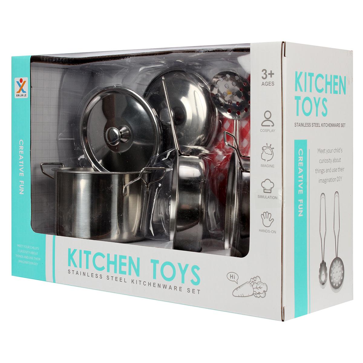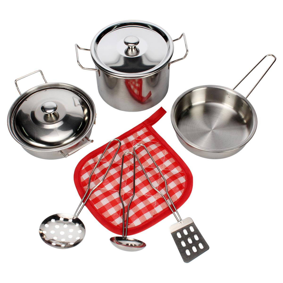 Металлическая посуда с реалистичным дизайном помогает развивать мелкую моторику и социальные навыки через увлекательную ролевую игру. Безопасные предметы с гладкой обработкой краёв подарят ребёнку радость первых кулинарных экспериментов.